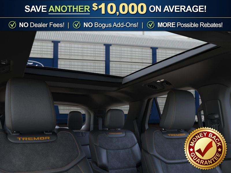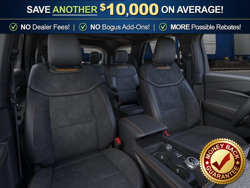 Tremor Ultimate Package (3rd Row PowerFold Seats, Ambient Lighting, Memory Driver's Seat, Multicontour Seats with Front Active Motion, Panoramic Fixed Glass Roof with Power Shade, Power-Folding with Autofold Side Mirrors, Radio: B&O Sound System by Bang & Olufsen, and Rain-Sensing Wipers (front Only)), 4WD, 10 Speakers, 3rd row seats: bench, 4-Wheel Disc Brakes, ABS brakes, Air Conditioning, Alloy wheels, AM/FM radio: SiriusXM with 360L, Apple CarPlay/Android Auto, Auto High-beam Headlights, Automatic temperature control, BlueCruise (equipment + 1-Year + 90-Day Plan), BlueCruise Hardware, Brake assist, Bumpers: body-color, Compass, Delay-off headlights, Driver door bin, Driver vanity mirror, Dual front impact airbags, Dual front side impact airbags, Electronic Stability Control, Emergency communication system: 911 Assist, Exterior Parking Camera Rear, Four wheel independent suspension, Front anti-roll bar, Front Bucket Seats, Front Center Armrest, Front dual zone A/C, Front fog lights, Front reading lights, Fully automatic headlights, Garage door transmitter, Heated door mirrors, Heated front seats, Heated rear seats, Heated steering wheel, Heated/Ventilated Miko Suede Captain's Chairs, Illuminated entry, Knee airbag, Leather steering wheel, Low tire pressure warning, Navigation System, Occupant sensing airbag, Outside temperature display, Overhead airbag, Overhead console, Panic alarm, Passenger door bin, Passenger vanity mirror, Power door mirrors, Power driver seat, Power Liftgate, Power passenger seat, Power steering, Power windows, Radio: B&O Sound System by Bang and Olufsen, Rear air conditioning, Rear anti-roll bar, Rear reading lights, Rear window defroster, Rear window wiper, Remote keyless entry, Security system, Speed control, Speed-sensing steering, Speed-Sensitive Wipers, Split folding rear seat, Spoiler, Sport steering wheel, Steering wheel mounted audio controls, Tachometer, Telescoping steering wheel, Tilt steering wheel, Traction control, Trip computer, Variably intermittent wipers, Ventilated front seats, and Wheels: 18" High Gloss Black-Painted Aluminum. Price includes: $2500 - Retail Customer Cash. Exp. 03/31/2026