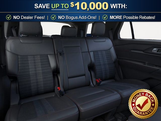 2026 Ford Explorer ST-Line NFT Vapor Blue Metallic ST-Line NFT RWD 10-Speed Automatic 2.3L EcoBoost I-4 10 Speakers, 110V/150W AC Power Outlet, 2nd Row Heated Seats, 3rd row seats: bench, 4-Wheel Disc Brakes, ABS brakes, Air Conditioning, Alloy wheels, AM/FM radio: SiriusXM with 360L, Ambient Lighting, Apple CarPlay/Android Auto, Auto High-beam Headlights, Auto-Dimming Interior Rear-View Mirror, Automatic temperature control, Brake assist, Bumpers: body-color, Compass, Delay-off headlights, Driver door bin, Driver vanity mirror, Dual front impact airbags, Dual front side impact airbags, Electronic Stability Control, Emergency communication system: 911 Assist, Exterior Parking Camera Rear, Four wheel independent suspension, Front anti-roll bar, Front Bucket Seats, Front Center Armrest, Front dual zone A/C, Front fog lights, Front reading lights, Fully automatic headlights, Garage door transmitter, Heated door mirrors, Heated front seats, Heated steering wheel, Heated Unique Cloth Captain's Chairs, Illuminated entry, Knee airbag, Leather steering wheel, Low tire pressure warning, Manual-Folding Sideview Mirrors, Memory Driver's Seat, Navigation System, Occupant sensing airbag, Outside temperature display, Overhead airbag, Overhead console, Panic alarm, Passenger door bin, Passenger vanity mirror, Power door mirrors, Power driver seat, Power Liftgate, Power passenger seat, Power steering, Power windows, Premium Package, Radio: B&O Sound System by Bang and Olufsen, Rain-Sensing Wipers (front Only), Rear air conditioning, Rear anti-roll bar, Rear reading lights, Rear window defroster, Rear window wiper, Remote keyless entry, Security system, Speed control, Speed-sensing steering, Speed-Sensitive Wipers, Split folding rear seat, Spoiler, Steering wheel mounted audio controls, Tachometer, Telescoping steering wheel, Tilt steering wheel, Traction control, Trip computer, Variably intermittent wipers, Wheels: 20" Ebony-Painted Machined Aluminum.