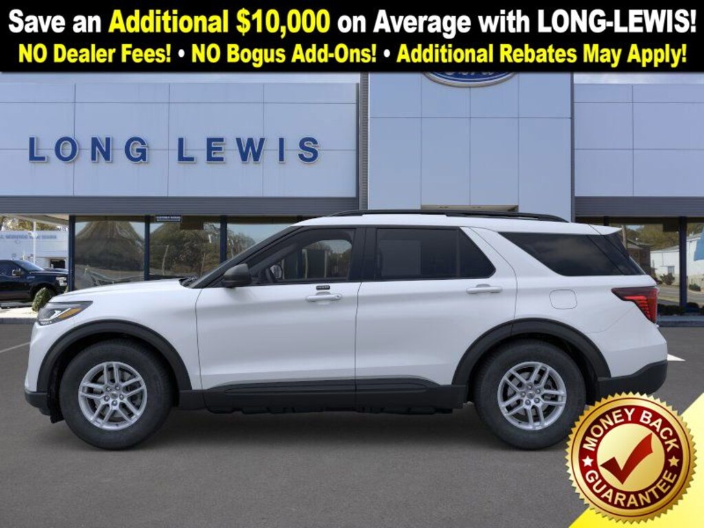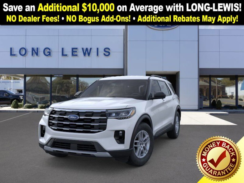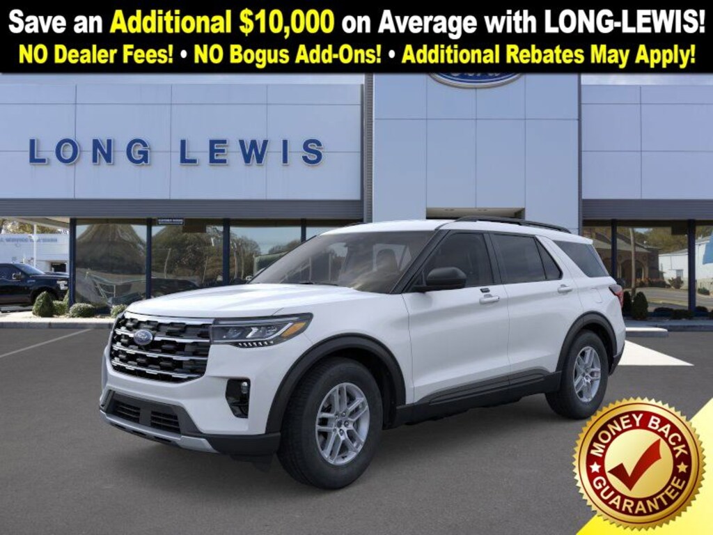 Space White Metallic 2026 Ford Explorer Active RWD 10-Speed Automatic 2.3L EcoBoost I-4 3rd row seats: bench, 4-Wheel Disc Brakes, 6 Speakers, ABS brakes, Active Comfort Package, Air Conditioning, Alloy wheels, AM/FM radio: SiriusXM with 360L, AM/FM Stereo, Apple CarPlay/Android Auto, Auto High-beam Headlights, Automatic temperature control, Brake assist, Bumpers: body-color, Compass, Delay-off headlights, Driver door bin, Driver vanity mirror, Dual front impact airbags, Dual front side impact airbags, Electronic Stability Control, Emergency communication system: 911 Assist, Exterior Parking Camera Rear, Four wheel independent suspension, Front anti-roll bar, Front Bucket Seats, Front Center Armrest, Front dual zone A/C, Front Fascia, Front License Plate Bracket, Front reading lights, Fully automatic headlights, Heated ActiveX Seating Material Captain's Chairs, Heated door mirrors, Heated Steering Wheel, Illuminated entry, Knee airbag, Low tire pressure warning, Navigation System, Occupant sensing airbag, Outside temperature display, Overhead airbag, Overhead console, Panic alarm, Passenger door bin, Passenger vanity mirror, Power driver seat, Power steering, Power windows, Rear air conditioning, Rear anti-roll bar, Rear reading lights, Rear window defroster, Rear window wiper, Remote keyless entry, Remote Start System, SecuriCode Keyless Entry Keypad, Security system, Speed control, Speed-sensing steering, Speed-Sensitive Wipers, Split folding rear seat, Spoiler, Steering wheel mounted audio controls, Tachometer, Telescoping steering wheel, Tilt steering wheel, Traction control, Trip computer, Unique Cloth Captain's Chairs, Variably intermittent wipers, Wheels: 18" Sparkle Silver-Painted Aluminum.