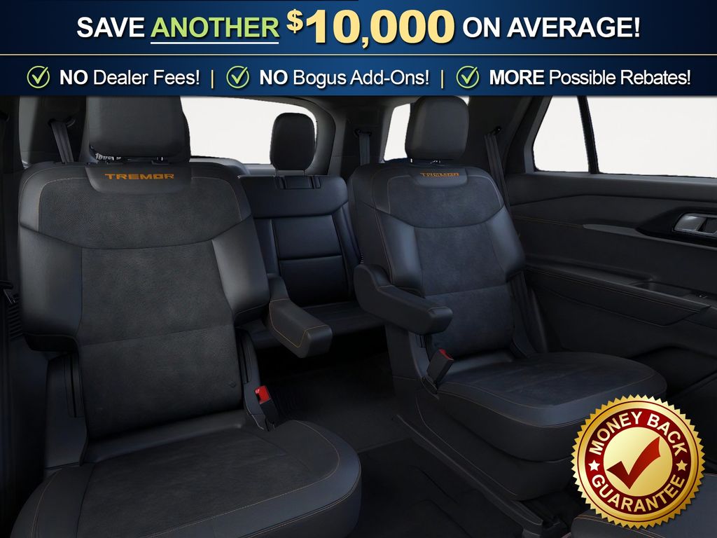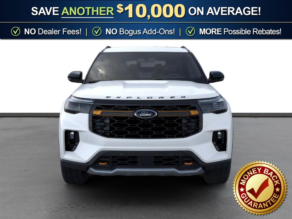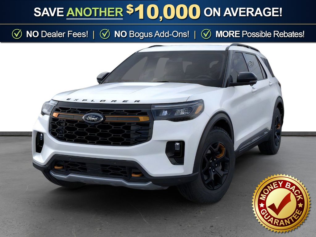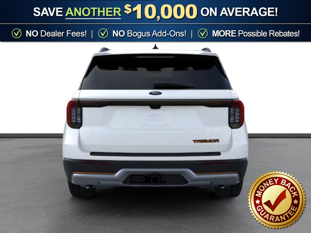 Star White Metallic Tri-Coat 2026 Ford Explorer Tremor NFT 4WD 10-Speed Automatic 3.0L EcoBoost V6 4WD, 10 Speakers, 3rd Row PowerFold Seats, 3rd row seats: bench, 4-Wheel Disc Brakes, ABS brakes, Air Conditioning, Alloy wheels, AM/FM radio: SiriusXM with 360L, Ambient Lighting, Apple CarPlay/Android Auto, Auto High-beam Headlights, Automatic temperature control, BlueCruise Hardware, Brake assist, Bumpers: body-color, Compass, Delay-off headlights, Driver door bin, Driver vanity mirror, Dual front impact airbags, Dual front side impact airbags, Electronic Stability Control, Emergency communication system: 911 Assist, Exterior Parking Camera Rear, Four wheel independent suspension, Front anti-roll bar, Front Bucket Seats, Front Center Armrest, Front dual zone A/C, Front fog lights, Front License Plate Bracket, Front reading lights, Fully automatic headlights, Garage door transmitter, Heated door mirrors, Heated front seats, Heated rear seats, Heated steering wheel, Heated/Ventilated Miko Suede Captain's Chairs, Illuminated entry, Knee airbag, Leather steering wheel, Low tire pressure warning, Memory Driver's Seat, Multicontour Seats with Front Active Motion, Navigation System, Occupant sensing airbag, Outside temperature display, Overhead airbag, Overhead console, Panic alarm, Panoramic Fixed Glass Roof with Power Shade, Passenger door bin, Passenger vanity mirror, Power door mirrors, Power driver seat, Power Liftgate, Power passenger seat, Power steering, Power windows, Power-Folding with Autofold Side Mirrors, Radio: B&O Sound System by Bang & Olufsen, Radio: B&O Sound System by Bang and Olufsen, Rain-Sensing Wipers (front Only), Rear air conditioning, Rear anti-roll bar, Rear reading lights, Rear window defroster, Rear window wiper, Remote keyless entry, SecuriCode Keyless Entry Keypad, Security system, Speed control, Speed-sensing steering, Speed-Sensitive Wipers, Split folding rear seat, Spoiler, Sport steering wheel, Steering wheel mounted audio controls, Tachometer, Telescoping steering wheel, Tilt steering wheel, Traction control, Tremor Ultimate Package, Trip computer, Variably intermittent wipers, Ventilated front seats, Wheels: 18" High Gloss Black-Painted Aluminum, 4WD.