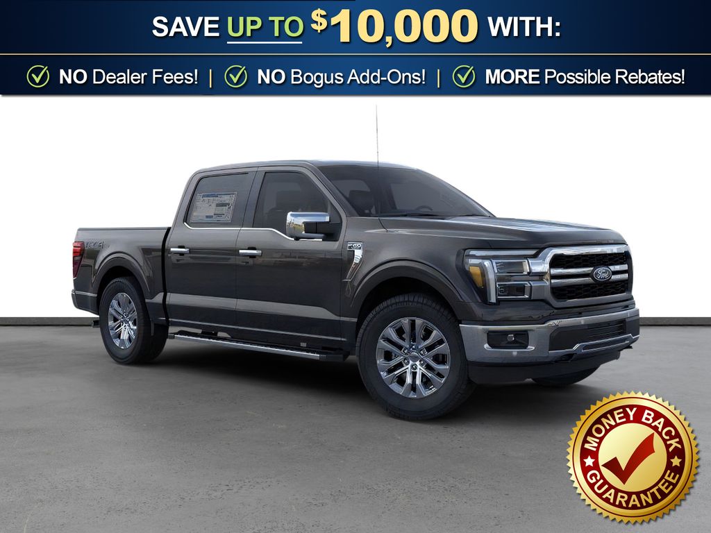 Agate Black Metallic 2026 Ford F-150 Lariat NFT 4WD 10-Speed Automatic 5.0L V8 4WD, 4-Wheel Disc Brakes, 4x4 FX4 Off-Road Bodyside Decal, 8 Speakers, ABS brakes, ActiveX Trimmed Bucket Seats, ActiveX Trimmed Smoked Truffle Bucket Seats, Air Conditioning, Alloy wheels, AM/FM radio: SiriusXM with 360L, Auto High-beam Headlights, Auto-dimming door mirrors, Auto-dimming Rear-View mirror, Automatic temperature control, Brake assist, Bumpers: chrome, Chrome wheels, Compass, Delay-off headlights, Driver door bin, Driver vanity mirror, Dual front impact airbags, Dual front side impact airbags, Electronic Stability Control, Emergency communication system: SYNC 4 911 Assist, Ford Connectivity Package (1-Year Included), Front anti-roll bar, Front Bucket Seats, Front Center Armrest, Front dual zone A/C, Front fog lights, Front License Plate Bracket, Front reading lights, Front wheel independent suspension, Fully automatic headlights, FX4 Off-Road Package, Garage door transmitter, Heated door mirrors, Heated front seats, Heated steering wheel, Hill Descent Control, Illuminated entry, Integrated Trailer Brake Controller, Internet access capable: 5G Modem - Ford Connectivity Package, Low tire pressure warning, Memory seat, Monotube Rear Shocks, Navigation system: Connected Navigation, Occupant sensing airbag, Off-Road Tuned Front Shock Absorbers, Outside temperature display, Overhead airbag, Overhead console, Panic alarm, Passenger door bin, Passenger vanity mirror, Power door mirrors, Power driver seat, Power passenger seat, Power steering, Power windows, Radio data system, Radio: B&O Sound System by Bang and Olufsen, Rain sensing wipers, Rear reading lights, Rear seat center armrest, Rear step bumper, Rear window defroster, Remote keyless entry, Security system, Speed control, Split folding rear seat, Steering wheel mounted audio controls, SYNC 4 with Enhanced Voice Recognition, Tachometer, Telescoping steering wheel, Tilt steering wheel, Tow/Haul Package, Traction control, Tray Style Floor Liner Without Carpet Mats, Trip computer, Turn signal indicator mirrors, Twin Panel Moonroof, Variably intermittent wipers, Ventilated front seats, Wheels: 18" Chrome-Like PVD, 4WD.
