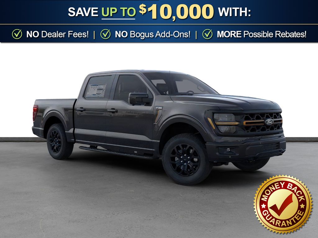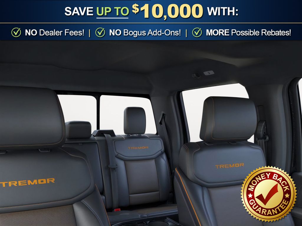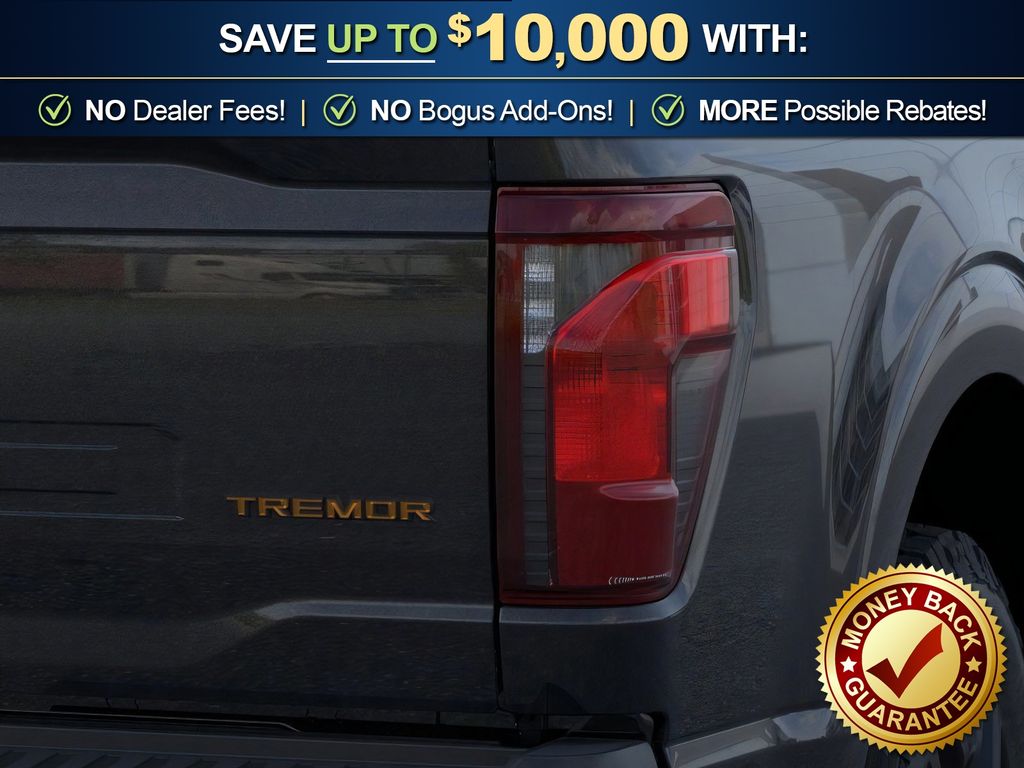 Agate Black Metallic 2026 Ford F-150 Tremor NFT 4WD 10-Speed Automatic 5.0L V8 4WD, 4 Pickup Box Tie-Down Plates, 4-Wheel Disc Brakes, 8 Speakers, ABS brakes, Adjustable pedals, Air Conditioning, Alloy wheels, AM/FM radio: SiriusXM with 360L, Auto High-beam Headlights, Auto-dimming Rear-View mirror, Automatic temperature control, Bed Utility Package, Brake assist, Bumpers: body-color, Compass, Console Worksurface, Delay-off headlights, Driver door bin, Driver vanity mirror, Driver's Side SecuriCode Keyless-Entry Keypad, Dual front impact airbags, Dual front side impact airbags, Electronic Locking with 3.73 Axle Ratio, Electronic Stability Control, Emergency communication system: SYNC 4 911 Assist, Ford Connectivity Package (1-Year Included), Front anti-roll bar, Front Bucket Seats, Front Center Armrest, Front dual zone A/C, Front fog lights, Front reading lights, Front wheel independent suspension, Fully automatic headlights, GVWR: 7,050 lbs Payload Package, Heated door mirrors, Heated front seats, Illuminated entry, Integrated Trailer Brake Controller, Internet access capable: 5G Modem - Ford Connectivity Package, LED Box Lighting, Low tire pressure warning, Mobile Office Package, Navigation system: Connected Navigation, Occupant sensing airbag, Outside temperature display, Overhead airbag, Overhead console, Panic alarm, Partitioned Lockable Rear Storage, Passenger door bin, Passenger vanity mirror, Power door mirrors, Power driver seat, Power passenger seat, Power steering, Power Tailgate, Power windows, Radio data system, Radio: B&O Sound System by Bang and Olufsen, Rear reading lights, Rear step bumper, Rear window defroster, Remote keyless entry, Security system, Speed control, Split folding rear seat, Steering wheel mounted audio controls, SYNC 4 with Enhanced Voice Recognition, Tachometer, Tailgate Step with Work Surface, Telescoping steering wheel, Tilt steering wheel, Tow/Haul Package, Traction control, Trip computer, Turn signal indicator mirrors, Unique Sport Cloth 40/Console/40 Power Front Seat, Variably intermittent wipers, Wheels: 18" Alloy with Dark Matte Finish, Wireless Charging, 4WD.