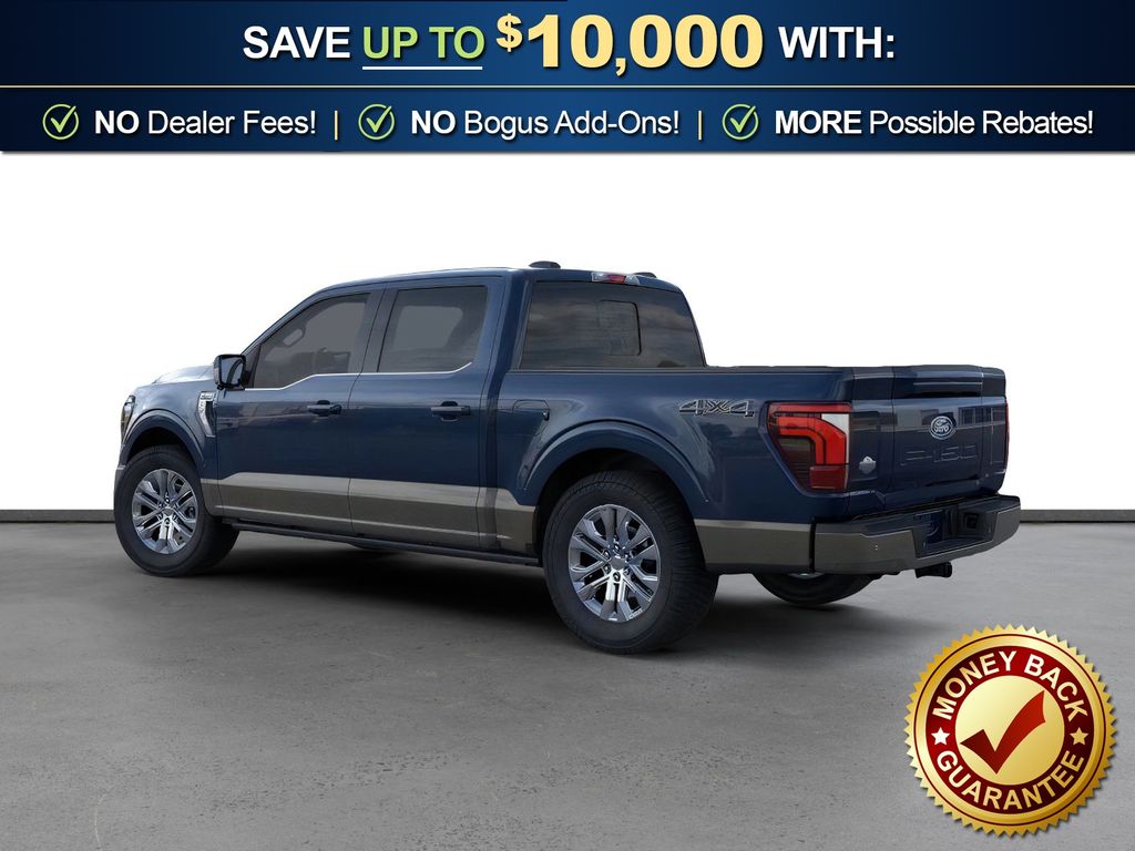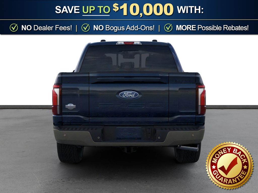Antimatter Blue Metallic 2026 Ford F-150 King Ranch NFT 4WD 10-Speed Automatic 3.5L V6 EcoBoost 4WD, 4-Wheel Disc Brakes, 8 Speakers, ABS brakes, Adjustable pedals, Air Conditioning, Alloy wheels, AM/FM radio: SiriusXM with 360L, Auto High-beam Headlights, Auto tilt-away steering wheel, Auto-dimming door mirrors, Auto-dimming Rear-View mirror, Automatic temperature control, Brake assist, Chrome wheels, Compass, Delay-off headlights, Driver door bin, Driver vanity mirror, Dual front impact airbags, Dual front side impact airbags, Electronic Locking with 3.55 Axle Ratio, Electronic Stability Control, Emergency communication system: SYNC 4 911 Assist, Ford Connectivity Package (1-Year Included), Front anti-roll bar, Front Bucket Seats, Front Center Armrest, Front dual zone A/C, Front fog lights, Front reading lights, Front wheel independent suspension, Fully automatic headlights, Garage door transmitter, Genuine wood dashboard insert, Heated door mirrors, Heated front seats, Heated rear seats, Heated steering wheel, Illuminated entry, Internet access capable: 5G Modem - Ford Connectivity Package, King Ranch Multicontour Leather Bucket Seats, Leather steering wheel, Low tire pressure warning, Memory seat, Navigation system: Connected Navigation, Occupant sensing airbag, Outside temperature display, Overhead airbag, Overhead console, Panic alarm, Passenger door bin, Passenger vanity mirror, Pedal memory, Power door mirrors, Power driver seat, Power passenger seat, Power steering, Power windows, Pro Access Tailgate, Radio data system, Radio: B&O Sound System by Bang and Olufsen, Rain sensing wipers, Rear reading lights, Rear seat center armrest, Rear step bumper, Rear window defroster, Remote keyless entry, Security system, Speed control, Split folding rear seat, Steering wheel memory, Steering wheel mounted audio controls, SYNC 4 with Enhanced Voice Recognition, Tachometer, Telescoping steering wheel, Tilt steering wheel, Traction control, Trip computer, Turn signal indicator mirrors, Twin Panel Moonroof, Variably intermittent wipers, Ventilated front seats, Wheel Well Liner, Wheels: 20" Chrome-Like PVD, 4WD.