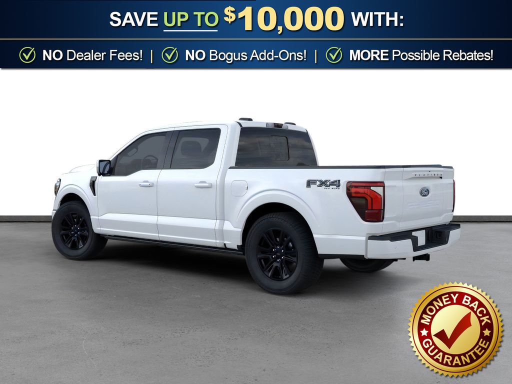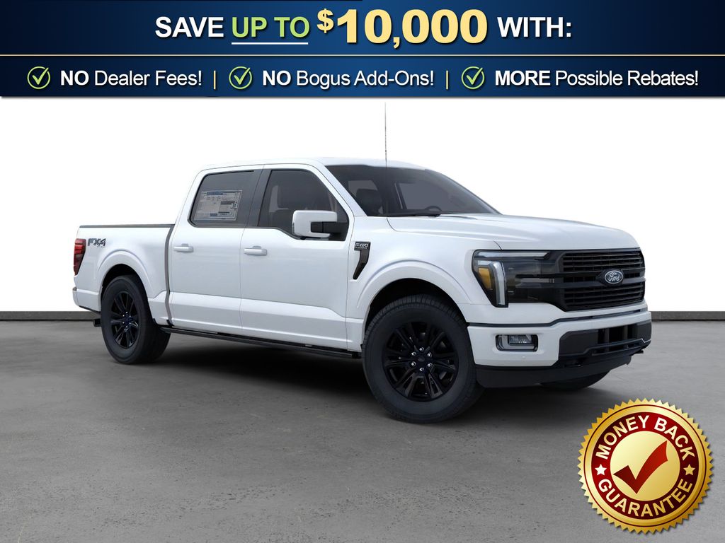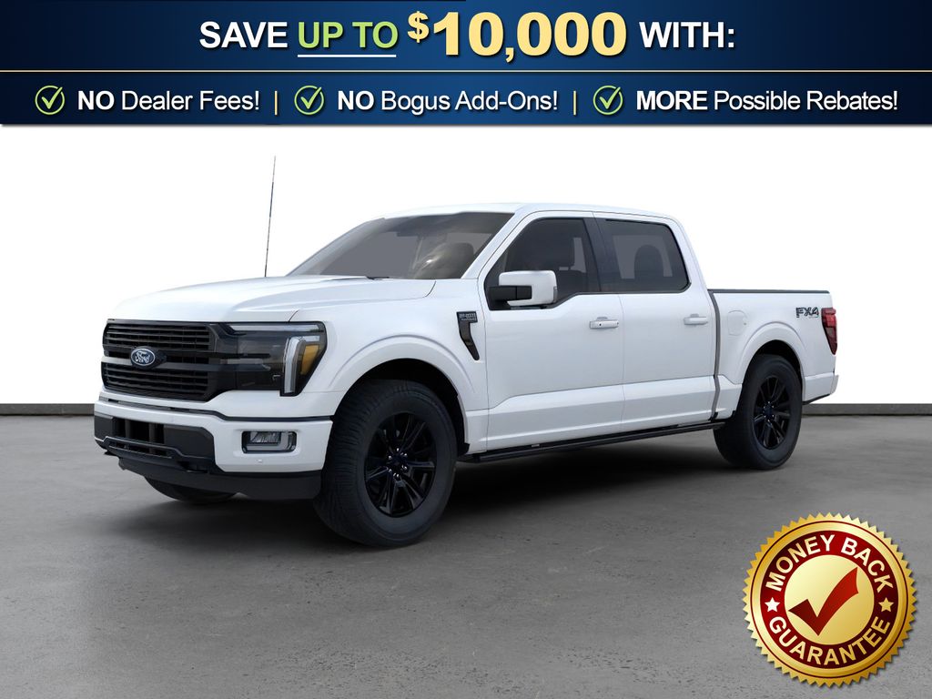 Dealer Discount of $4,711 off MSRP Star White Metallic Tri-Coat 2026 Ford F-150 Platinum NFT 4WD 10-Speed Automatic 3.5L V6 EcoBoost 4WD, 4-Wheel Disc Brakes, 4x4 FX4 Off-Road Bodyside Decal, 8 Speakers, ABS brakes, Adjustable pedals, Air Conditioning, Alloy wheels, AM/FM radio: SiriusXM with 360L, Auto High-beam Headlights, Auto tilt-away steering wheel, Auto-dimming door mirrors, Auto-dimming Rear-View mirror, Automatic temperature control, Brake assist, Bumpers: body-color, Compass, Delay-off headlights, Driver door bin, Driver vanity mirror, Driver's Side SecuriCode Keyless-Entry Keypad, Dual front impact airbags, Dual front side impact airbags, Electronic Locking with 3.55 Axle Ratio, Electronic Stability Control, Emergency communication system: SYNC 4 911 Assist, Ford Connectivity Package (1-Year Included), Front anti-roll bar, Front Bucket Seats, Front Center Armrest, Front dual zone A/C, Front fog lights, Front License Plate Bracket, Front reading lights, Front wheel independent suspension, Fully automatic headlights, FX4 Off-Road Package, Garage door transmitter, GVWR: 7,400 lbs Payload Package, Heated door mirrors, Heated front seats, Heated rear seats, Heated steering wheel, Hill Descent Control, Illuminated entry, Internet access capable: 5G Modem - Ford Connectivity Package, Leather steering wheel, Low tire pressure warning, Memory seat, Monotube Rear Shocks, Navigation system: Connected Navigation, Occupant sensing airbag, Off-Road Tuned Front Shock Absorbers, Outside temperature display, Overhead airbag, Overhead console, Panic alarm, Passenger door bin, Passenger vanity mirror, Pedal memory, Power door mirrors, Power driver seat, Power passenger seat, Power steering, Power windows, Pro Access Tailgate, Radio data system, Radio: B&O Sound System by Bang and Olufsen, Rain sensing wipers, Rear reading lights, Rear seat center armrest, Rear step bumper, Rear window defroster, Remote keyless entry, Security system, Speed control, Split folding rear seat, Steering wheel memory, Steering wheel mounted audio controls, SYNC 4 with Enhanced Voice Recognition, Tachometer, Telescoping steering wheel, Tilt steering wheel, Traction control, Tray Style Floor Liner, Trip computer, Turn signal indicator mirrors, Twin Panel Moonroof, Unique Multi-Contour Leather Bucket Seats, Variably intermittent wipers, Ventilated front seats, Wheels: 20" Painted Gloss Ebony Black, 4WD.