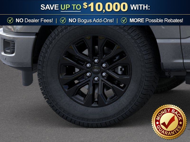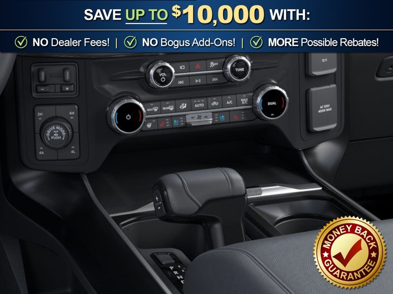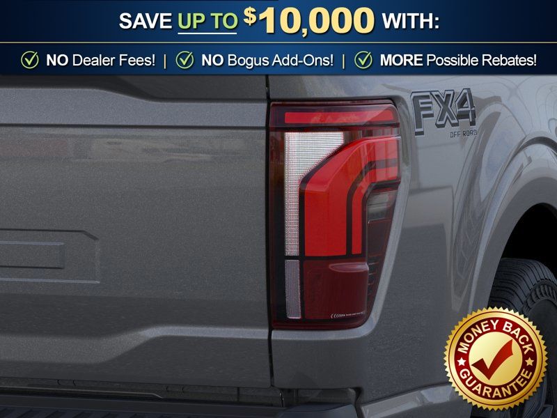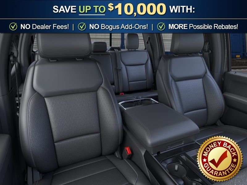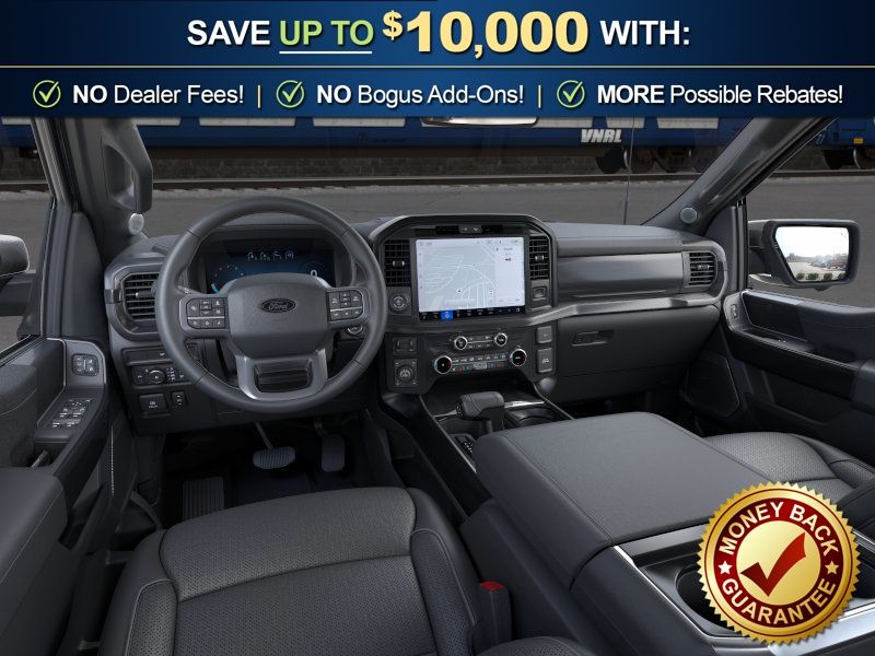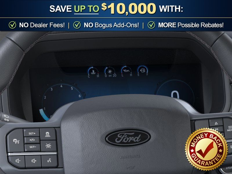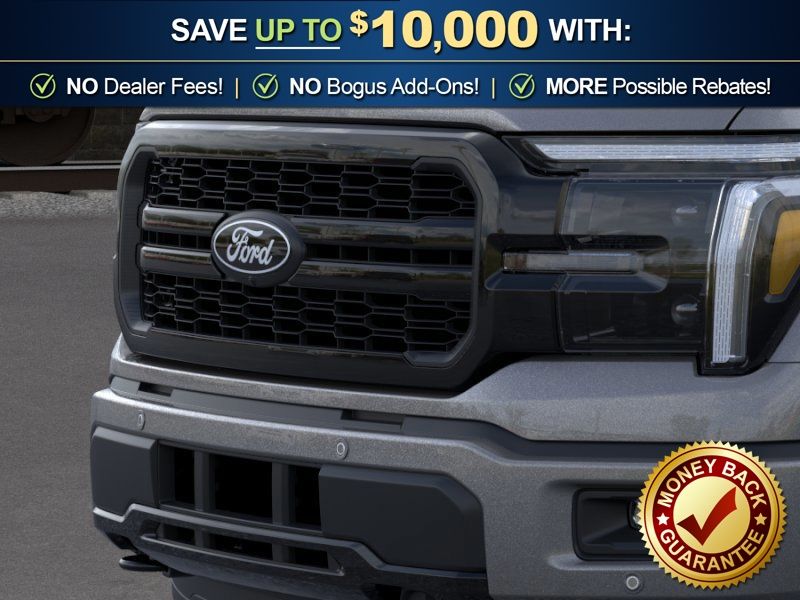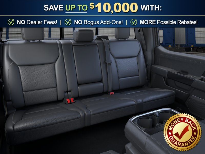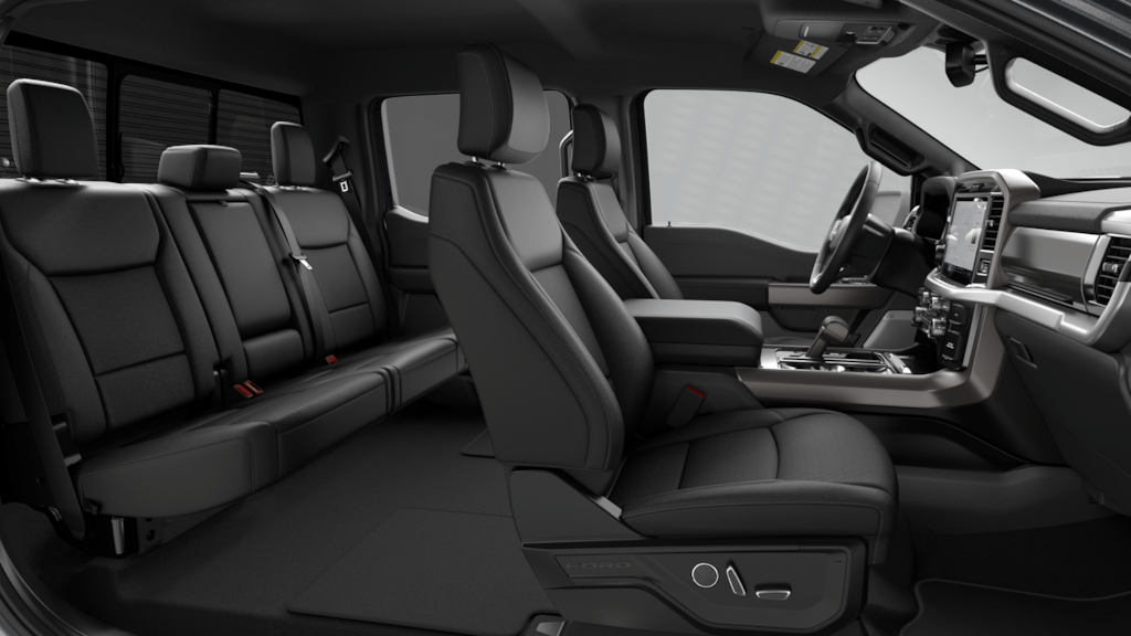 Ford Connectivity Package (1-Year Included), FX4 Off-Road Package (4x4 FX4 Off-Road Bodyside Decal, Hill Descent Control, Monotube Rear Shocks, Off-Road Tuned Front Shock Absorbers, and Tray Style Floor Liner Without Carpet Mats), Internet access capable: 5G Modem - Ford Connectivity Package, Lariat Black Appearance Package (ActiveX Trimmed Bucket Seats, Black Exterior Badging, Black Grille, Black Taillamp Bezels, Body-Color Front and Rear Bumpers, Body-Color Skull Caps and Door Handles, Dark Interior Appliques, and Gray Box Side Decal), Tow/Haul Package (Integrated Trailer Brake Controller), 4WD, 4-Wheel Disc Brakes, 8 Speakers, ABS brakes, Air Conditioning, Alloy wheels, AM/FM radio: SiriusXM with 360L, Auto High-beam Headlights, Auto-dimming door mirrors, Auto-dimming Rear-View mirror, Automatic temperature control, Brake assist, Bumpers: chrome, Chrome wheels, Compass, Delay-off headlights, Driver door bin, Driver vanity mirror, Driver's Side SecuriCode Keyless-Entry Keypad, Dual front impact airbags, Dual front side impact airbags, Electronic Stability Control, Emergency communication system: SYNC 4 911 Assist, Front anti-roll bar, Front Bucket Seats, Front Center Armrest, Front dual zone A/C, Front fog lights, Front reading lights, Front wheel independent suspension, Fully automatic headlights, Garage door transmitter, Heated door mirrors, Heated front seats, Heated steering wheel, Illuminated entry, Low tire pressure warning, Memory seat, Navigation system: Connected Navigation, Occupant sensing airbag, Outside temperature display, Overhead airbag, Overhead console, Panic alarm, Passenger door bin, Passenger vanity mirror, Power door mirrors, Power driver seat, Power passenger seat, Power steering, Power windows, Radio data system, Radio: B&O Sound System by Bang and Olufsen, Rain sensing wipers, Rear reading lights, Rear seat center armrest, Rear step bumper, Rear window defroster, Remote keyless entry, Security system, Speed control, Split folding rear seat, Steering wheel mounted audio controls, SYNC 4 with Enhanced Voice Recognition, Tachometer, Telescoping steering wheel, Tilt steering wheel, Traction control, Trip computer, Turn signal indicator mirrors, Variably intermittent wipers, Ventilated front seats, and Wheels: 18" Chrome-Like PVD.