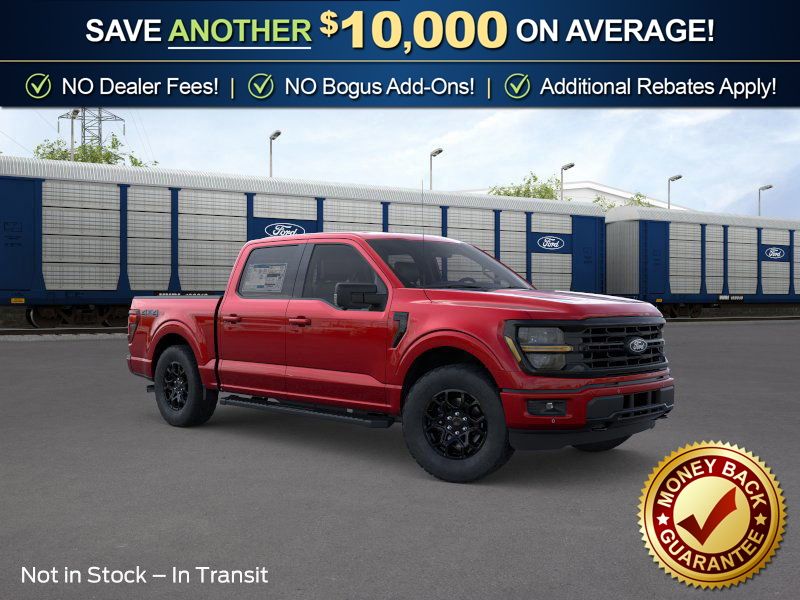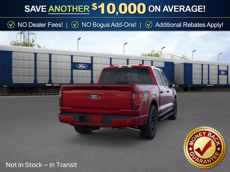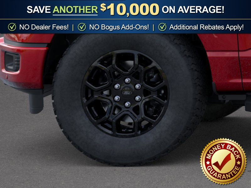 Bed Utility Package (4 Pickup Box Tie-Down Plates, Bed Storage Boxes, LED Box Lighting, and Tailgate Step with Work Surface), Ford Connectivity Package (1-Year Included), GVWR: 6,650 lbs Payload Package, Internet access capable: 5G Modem - Ford Connectivity Package, XLT Black Appearance Package (6" Black Running Boards, Black Exterior Badging, Black Grille, Body-Color Door Handles, Body-Color Front and Rear Bumpers, Dark Interior Appliques, Floor Shifter, Gray Box Side Decal, Unique Sport Cloth 40/Console/40 Front-Seats, and Wheels: 18" Gloss Black), 4WD, 18" Painted Aluminum Wheels, 4-Wheel Disc Brakes, 6 Speakers, ABS brakes, Air Conditioning, Alloy wheels, AM/FM radio: SiriusXM with 360L, Auto High-beam Headlights, Brake assist, Bumpers: body-color, Compass, Delay-off headlights, Driver door bin, Driver vanity mirror, Dual front impact airbags, Dual front side impact airbags, Electronic Stability Control, Emergency communication system: SYNC 4 911 Assist, Front anti-roll bar, Front Center Armrest, Front fog lights, Front reading lights, Front wheel independent suspension, Fully automatic headlights, Heated door mirrors, Illuminated entry, Low tire pressure warning, Occupant sensing airbag, Outside temperature display, Overhead airbag, Overhead console, Panic alarm, Passenger door bin, Passenger vanity mirror, Power door mirrors, Power steering, Power windows, Radio data system, Radio: AM/FM Stereo with SiriusXM 360L, Rear Parking Sensors, Rear reading lights, Rear step bumper, Rear window defroster, Remote keyless entry, Security system, Speed control, Split folding rear seat, Steering wheel mounted audio controls, SYNC 4 with Enhanced Voice Recognition, Tachometer, Telescoping steering wheel, Tilt steering wheel, Traction control, Trip computer, and Variably intermittent wipers.