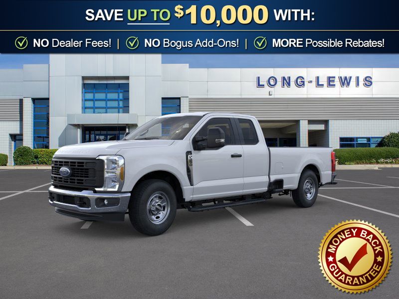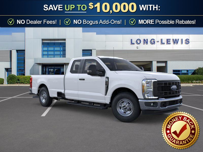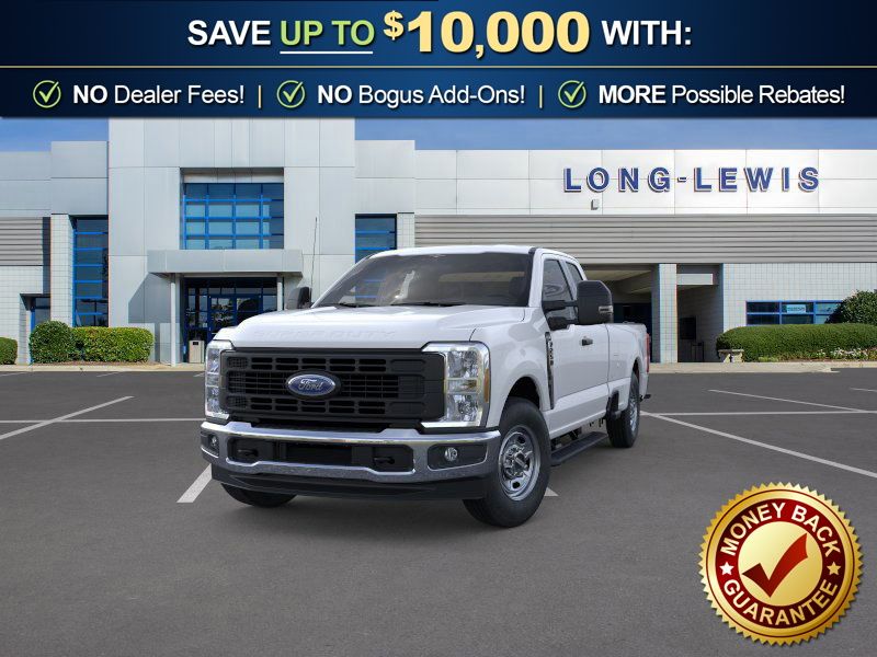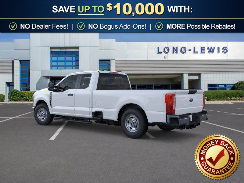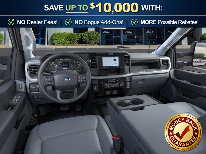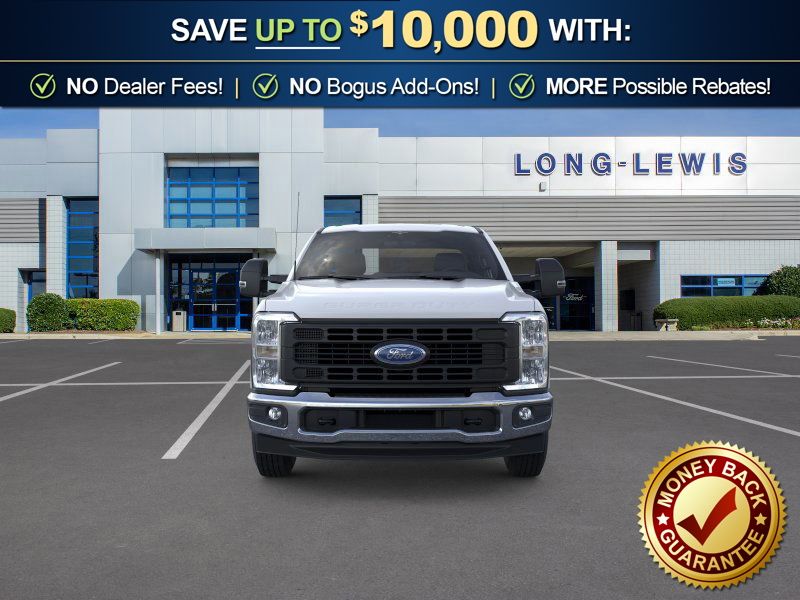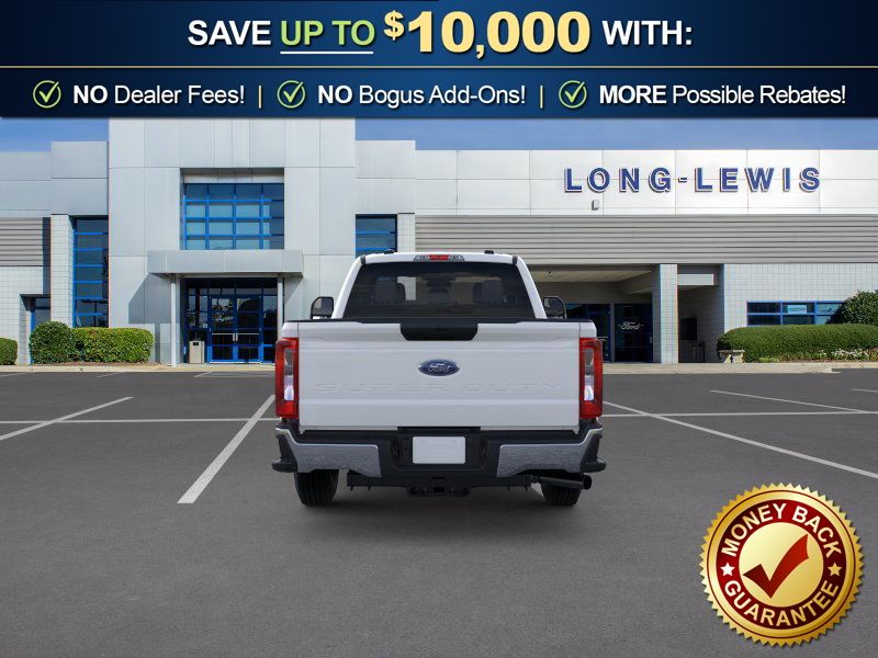 Oxford White 2026 Ford F-250SD FLT RWD 10-Speed Automatic 6.8L V8 3.73 Axle Ratio, 4-Wheel Disc Brakes, 6 Speakers, ABS brakes, Air Conditioning, AM/FM radio, Brake assist, Cloth 40/20/40 Split Bench Seat, Compass, Delay-off headlights, Dual front impact airbags, Dual front side impact airbags, Electronic Stability Control, Emergency communication system: SYNC 4 911 Assist, Exterior Parking Camera Rear, Ford Connectivity Package (1-Year Included), Front anti-roll bar, Front Center Armrest w/Storage, Front reading lights, Front wheel independent suspension, Fully automatic headlights, GVWR: 10,000 Lb Payload Package, Heated door mirrors, Illuminated entry, Internet access capable: 5G Modem - Ford Connectivity Package, Low tire pressure warning, Outside temperature display, Overhead airbag, Overhead console, Panic alarm, Passenger cancellable airbag, Passenger vanity mirror, Power door mirrors, Power steering, Power windows, Privacy Glass, Radio: AM/FM Stereo with MP3 Player, Rear step bumper, Remote keyless entry, Security system, Speed control, Split folding rear seat, Steering wheel mounted audio controls, SYNC 4, Tachometer, Telescoping steering wheel, Tilt steering wheel, Traction control, Trip computer, Turn signal indicator mirrors, Variably intermittent wipers.