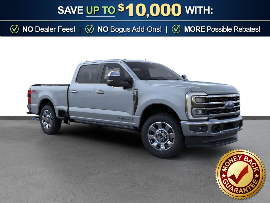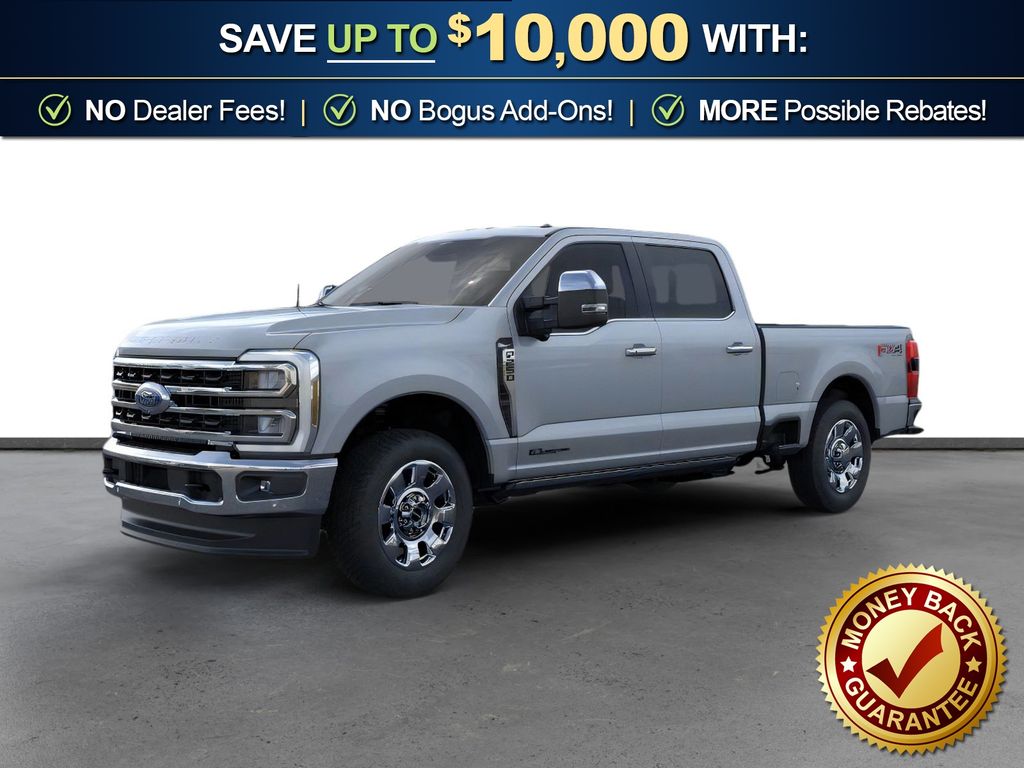 Glacier Gray Metallic Tri-Coat 2026 Ford F-250SD Lariat NFT 4WD 10-Speed Automatic Power Stroke 6.7L V8 DI 32V OHV Turbodiesel 4WD, 4-Wheel Disc Brakes, 410 Amp Dual Alternators, 8 Speakers, ABS brakes, Adjustable pedals, Air Conditioning, Alloy wheels, AM/FM radio: SiriusXM with 360L, Auto High-beam Headlights, Auto-dimming Rear-View mirror, Automatic temperature control, BLIS with Cross-Traffic Alert, Brake assist, Bumpers: chrome, Chrome Package, Compass, Delay-off headlights, Driver door bin, Driver vanity mirror, Dual front impact airbags, Dual front side impact airbags, Electronic Stability Control, Emergency communication system: SYNC 4 911 Assist, Engine Block Heater, Flow-Through Console, Ford Connectivity Package (1-Year Included), Front ActiveX Trimmed 40/Console/40 Seats, Front anti-roll bar, Front Bucket Seats, Front Center Armrest, Front dual zone A/C, Front fog lights, Front reading lights, Fully automatic headlights, FX4 Off-Road Package, Garage door transmitter, GVWR: F-250 >10K Package, Heated door mirrors, Heated front seats, Heated rear seats, Heated steering wheel, Hill Descent Control, Illuminated entry, Internet access capable: 5G Modem - Ford Connectivity Package, LED Roof Clearance Lights, Low tire pressure warning, Memory seat, Navigation system: Connected Navigation, Off-Road Specifically Tuned Shock Absorbers, Outside temperature display, Overhead airbag, Overhead console, Panic alarm, Passenger door bin, Passenger vanity mirror, Pedal memory, Power door mirrors, Power driver seat, Power passenger seat, Power steering, Power windows, Power-Deployable Running Boards, Privacy Glass, Radio: B&O Sound System by Bang and Olufsen, Rain sensing wipers, Rapid-Heat Supplemental Cab Heater, Rear Parking Sensors, Rear reading lights, Rear seat center armrest, Rear step bumper, Rear window defroster, Remote keyless entry, Security system, SiriusXM with 360L, Speed control, Split folding rear seat, Steering wheel mounted audio controls, SYNC 4 with Enhanced Voice Recognition, Tachometer, Telescoping steering wheel, Tilt steering wheel, Traction control, Trip computer, Turn signal indicator mirrors, Twin Panel Power Moonroof, Unique FX4 Off-Road Box Decal, Upfitter Switches (6), Variably intermittent wipers, Ventilated front seats, Wheels: 18" Bright Machined and Carbonized Gray Aluminum, 4WD.