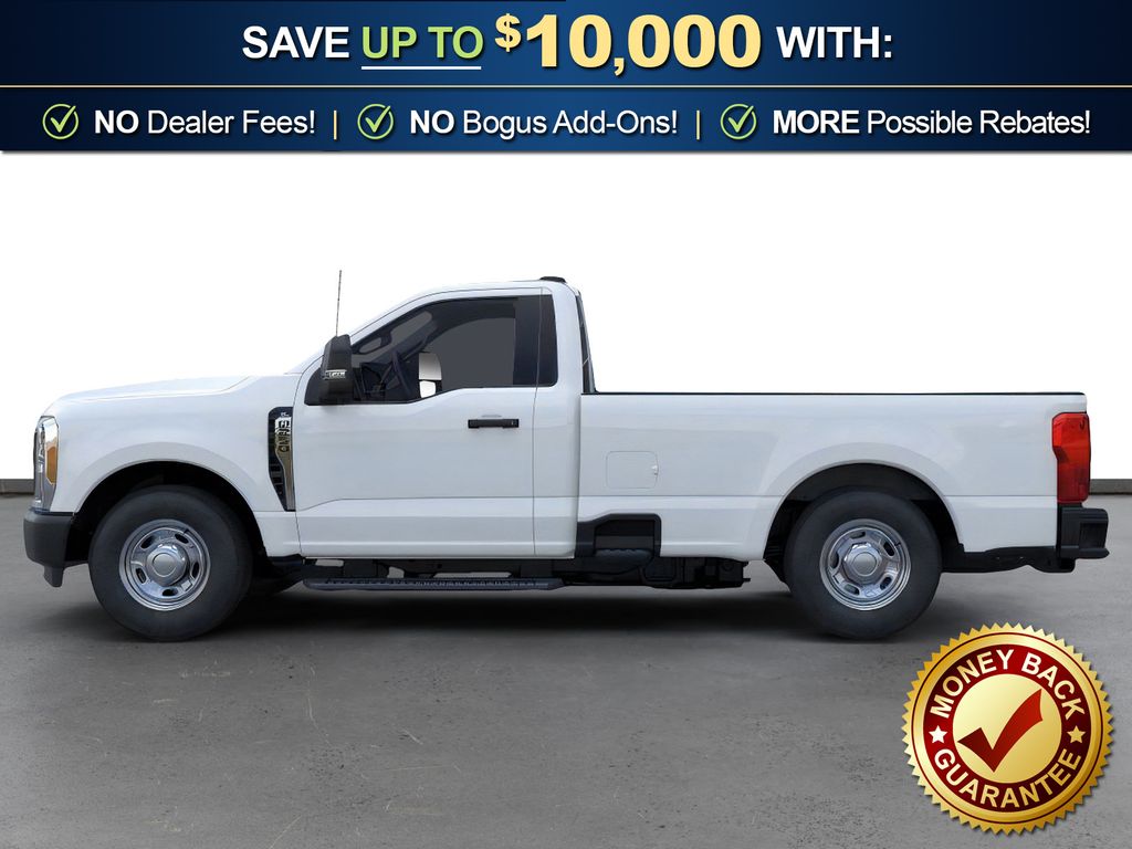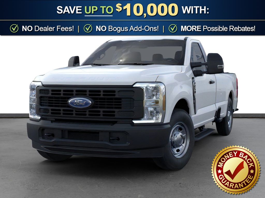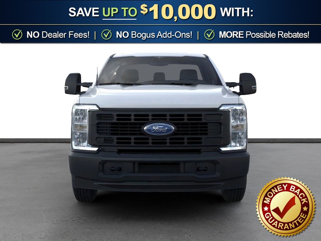 Oxford White 2026 Ford F-250SD XL CMF RWD 10-Speed Automatic 6.8L V8 3.73 Axle Ratio, 4 Speakers, 4-Wheel Disc Brakes, ABS brakes, Air Conditioning, AM/FM radio, Brake assist, Cloth 40/20/40 Split Bench Seat, Compass, Delay-off headlights, Dual front impact airbags, Dual front side impact airbags, Electronic Stability Control, Emergency communication system: SYNC 4 911 Assist, Exterior Parking Camera Rear, Ford Connectivity Package (1-Year Included), Front anti-roll bar, Front Center Armrest w/Storage, Front License Plate Bracket, Front reading lights, Front wheel independent suspension, Fully automatic headlights, GVWR: 10,000 Lb Payload Package, Heated door mirrors, Illuminated entry, Internet access capable: 5G Modem - Ford Connectivity Package, Low tire pressure warning, Outside temperature display, Overhead airbag, Overhead console, Panic alarm, Passenger cancellable airbag, Passenger vanity mirror, Platform Running Boards, Power door mirrors, Power steering, Power windows, Radio: AM/FM Stereo with MP3 Player, Rear step bumper, Remote keyless entry, Security system, Speed control, Steering wheel mounted audio controls, SYNC 4, Tachometer, Telescoping steering wheel, Tilt steering wheel, Traction control, Trip computer, Turn signal indicator mirrors, Variably intermittent wipers.