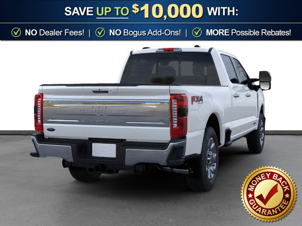 5th Wheel/Gooseneck Hitch Prep Package, Chrome Package, Ford Connectivity Package (1-Year Included), FX4 Off-Road Package (Hill Descent Control, Off-Road Specifically Tuned Shock Absorbers, and Unique FX4 Off-Road Box Decal), GVWR: F-250 >10K Package, Internet access capable: 5G Modem - Ford Connectivity Package, 4WD, 4-Wheel Disc Brakes, 410 Amp Dual Alternators, 8 Speakers, ABS brakes, Adjustable pedals, Air Conditioning, Alloy wheels, AM/FM radio: SiriusXM with 360L, Auto High-beam Headlights, Auto-dimming Rear-View mirror, Automatic temperature control, BLIS with Cross-Traffic Alert, Brake assist, Bumpers: chrome, Compass, Delay-off headlights, Driver door bin, Driver vanity mirror, Dual front impact airbags, Dual front side impact airbags, Electronic Stability Control, Emergency communication system: SYNC 4 911 Assist, Engine Block Heater, Flow-Through Console, Front ActiveX Trimmed 40/Console/40 Seats, Front anti-roll bar, Front Bucket Seats, Front Center Armrest, Front dual zone A/C, Front fog lights, Front reading lights, Fully automatic headlights, Garage door transmitter, Heated door mirrors, Heated front seats, Heated rear seats, Heated steering wheel, Illuminated entry, LED Roof Clearance Lights, Low tire pressure warning, Memory seat, Navigation system: Connected Navigation, Outside temperature display, Overhead airbag, Overhead console, Panic alarm, Passenger door bin, Passenger vanity mirror, Pedal memory, Power door mirrors, Power driver seat, Power passenger seat, Power steering, Power windows, Power-Deployable Running Boards, Privacy Glass, Radio: B&O Sound System by Bang and Olufsen, Rain sensing wipers, Rapid-Heat Supplemental Cab Heater, Rear Parking Sensors, Rear reading lights, Rear seat center armrest, Rear step bumper, Rear window defroster, Remote keyless entry, Security system, SiriusXM with 360L, Speed control, Split folding rear seat, Steering wheel mounted audio controls, SYNC 4 with Enhanced Voice Recognition, Tachometer, Telescoping steering wheel, Tilt steering wheel, Traction control, Trip computer, Turn signal indicator mirrors, Twin Panel Power Moonroof, Upfitter Switches (6), Variably intermittent wipers, Ventilated front seats, and Wheels: 18" Bright Machined and Carbonized Gray Aluminum.