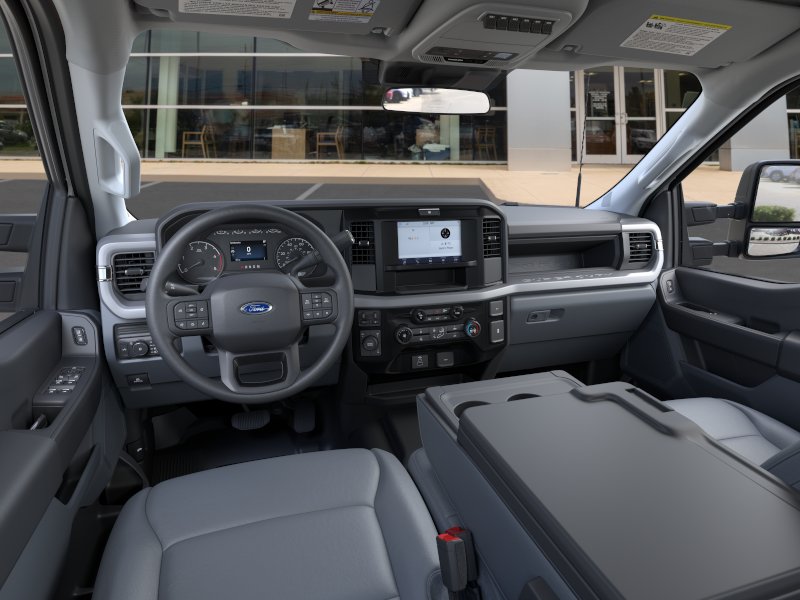 2026 Ford F-250SD XL FLT Oxford White XL FLT 4WD 10-Speed Automatic Power Stroke 6.7L V8 DI 32V OHV Turbodiesel 4WD, 17" Argent Painted Steel Wheels, 190 Amp Alternator, 4-Wheel Disc Brakes, 6 Speakers, ABS brakes, Air Conditioning, AM/FM radio, Brake assist, Bright Chrome Hub Covers and Center Ornaments, Chrome Front Bumper, Chrome Rear Step Bumper, Compass, Delay-off headlights, Dual AGM 68 AH Battery, Dual front impact airbags, Dual front side impact airbags, Electronic Stability Control, Emergency communication system: SYNC 4 911 Assist, Exterior Parking Camera Rear, Ford Connectivity Package (1-Year Included), Front anti-roll bar, Front Center Armrest w/Storage, Front License Plate Bracket, Front reading lights, Fully automatic headlights, GVWR: 10,000 Lb Payload Package, Halogen Fog Lamps, HD Vinyl 40/20/40 Split Bench Seat, Heated door mirrors, Illuminated entry, Interior Work Surface, Internet access capable: 5G Modem - Ford Connectivity Package, Low tire pressure warning, Outside temperature display, Overhead airbag, Overhead console, Panic alarm, Passenger vanity mirror, Platform Running Boards, Power door mirrors, Power steering, Power windows, Radio: AM/FM Stereo with MP3 Player, Rear reading lights, Rear step bumper, Remote keyless entry, Security system, Speed control, Split folding rear seat, Steering wheel mounted audio controls, SYNC 4, Tachometer, Telescoping steering wheel, Tilt steering wheel, Traction control, Trailer Brake Controller, Trip computer, Turn signal indicator mirrors, Upfitter Switches (6), Variably intermittent wipers, XL Chrome Package, 4WD.