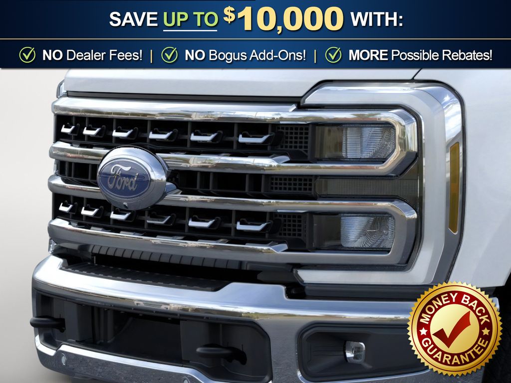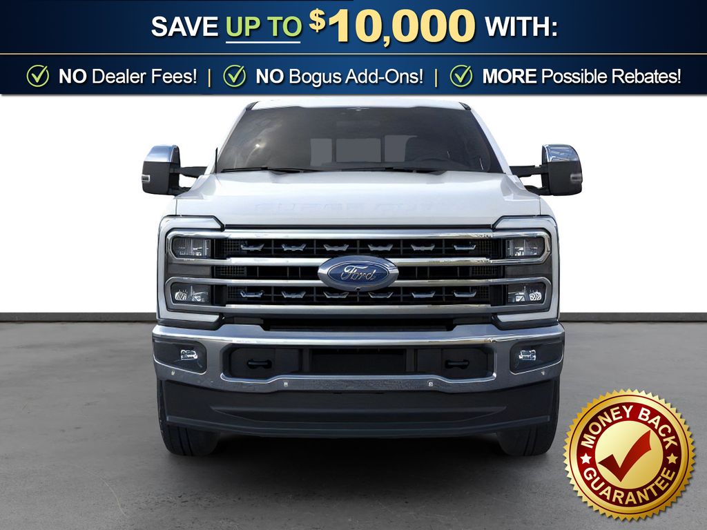 Star White Metallic Tri-Coat 2026 Ford F-350SD Lariat NFT 4WD 10-Speed Automatic 7.3L V8 PFI SOHC 16V Federal 405hp 4WD, 190 Amp Alternator, 4-Wheel Disc Brakes, 410 Amp Dual Alternators, 8 Speakers, ABS brakes, Adaptive Cruise Control with Stop-and-Go, Adjustable pedals, Air Conditioning, Alloy wheels, AM/FM radio: SiriusXM with 360L, Auto High-beam Headlights, Auto-dimming Rear-View mirror, Automatic High Beam, Automatic temperature control, BLIS with Cross-Traffic Alert, Brake assist, Bumpers: chrome, Chrome Package, Compass, Delay-off headlights, Driver door bin, Driver vanity mirror, Dual AGM 68 AH Battery, Dual front impact airbags, Dual front side impact airbags, Electronic Stability Control, Emergency communication system: SYNC 4 911 Assist, Flow-Through Console, Ford Connectivity Package (1-Year Included), Front ActiveX Trimmed 40/Console/40 Seats, Front and Rear Parking Sensors, Front anti-roll bar, Front Bucket Seats, Front Center Armrest, Front dual zone A/C, Front fog lights, Front reading lights, Fully automatic headlights, FX4 Off-Road Package, Garage door transmitter, Heated door mirrors, Heated front seats, Heated rear seats, Heated steering wheel, Hill Descent Control, Illuminated entry, Internet access capable: 5G Modem - Ford Connectivity Package, Lane-Keeping System, Lariat Premium Package, Low tire pressure warning, Memory seat, Navigation system: Connected Navigation, Off-Road Specifically Tuned Shock Absorbers, Outside temperature display, Overhead airbag, Overhead console, Panic alarm, Passenger door bin, Passenger vanity mirror, Pedal memory, Post-Collision Braking, Power door mirrors, Power driver seat, Power passenger seat, Power steering, Power windows, Power-Sliding Rear-Window with Defrost, Pre-Collision Assist, Privacy Glass, Pro Trailer Backup Assist, Pro Trailer Hitch Assist, Radio: B&O Sound System by Bang and Olufsen, Rain sensing wipers, Rear Parking Sensors, Rear reading lights, Rear seat center armrest, Rear step bumper, Rear window defroster, Remote keyless entry, Security system, SiriusXM with 360L, Speed control, Split folding rear seat, Steering wheel mounted audio controls, SYNC 4 with Enhanced Voice Recognition, Tachometer, Tailgate Step and Handle, Telescoping steering wheel, Tilt steering wheel, Traction control, Trip computer, Turn signal indicator mirrors, Unique FX4 Off-Road Box Decal, Upfitter Switches (6), Variably intermittent wipers, Ventilated front seats, Wheels: 18" Bright Machined and Carbonized Gray Aluminum, 4WD.