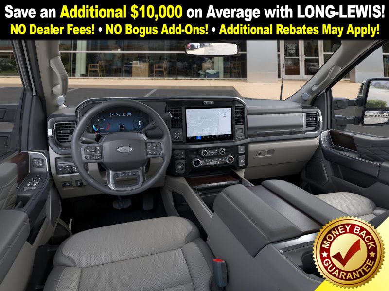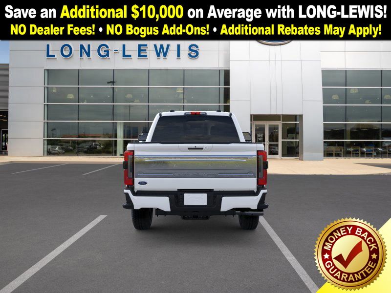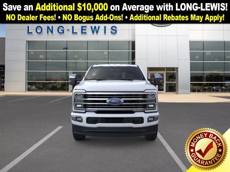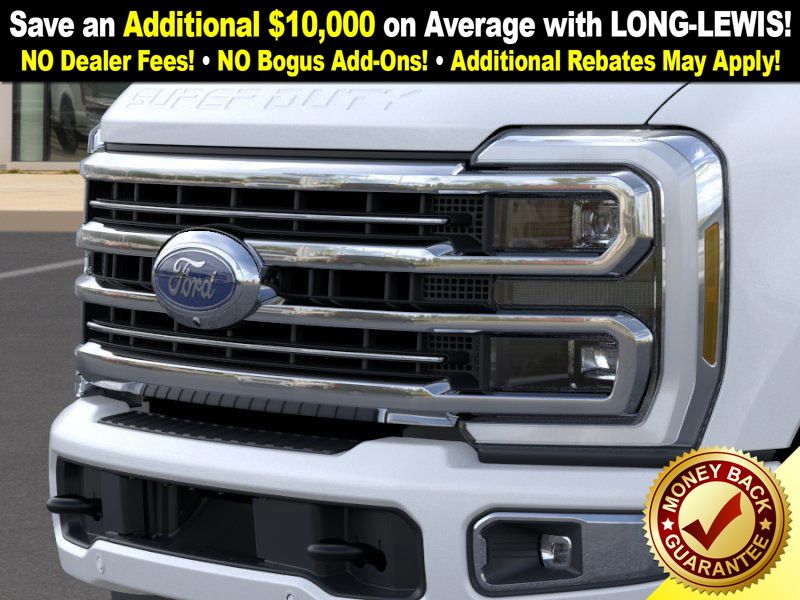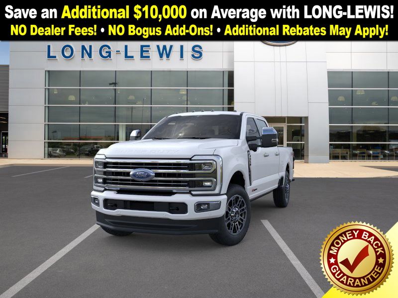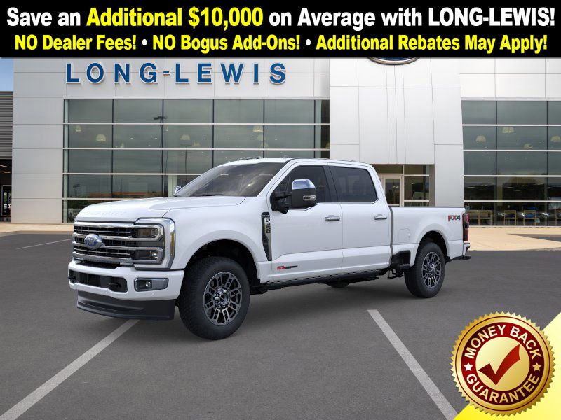 Star White Metallic Tri-Coat 2026 Ford F-350SD Platinum NFT 4WD 10-Speed Automatic 6.7L High Output Power Stroke V8 Diesel 4WD, 4-Wheel Disc Brakes, 410 Amp Dual Alternators, 5th Wheel/Gooseneck Hitch Prep Package, ABS brakes, Adjustable pedals, Air Conditioning, Alloy wheels, AM/FM radio: SiriusXM with 360L, Auto High-beam Headlights, Auto-dimming Rear-View mirror, Automatic temperature control, Brake assist, Compass, Delay-off headlights, Driver door bin, Driver vanity mirror, Dual front impact airbags, Dual front side impact airbags, Electronic Stability Control, Emergency communication system: SYNC 4 911 Assist, Engine Block Heater, Flow-Through Console, Ford Connectivity Package (1-Year Included), Front anti-roll bar, Front Bucket Seats, Front Center Armrest, Front dual zone A/C, Front fog lights, Front reading lights, Fully automatic headlights, FX4 Off-Road Package, Garage door transmitter, Heated door mirrors, Heated front seats, Heated rear seats, Heated steering wheel, Hill Descent Control, Illuminated entry, Internet access capable: 5G Modem - Ford Connectivity Package, LED Roof Clearance Lights, Low tire pressure warning, Memory seat, Navigation system: Connected Navigation, Off-Road Specifically Tuned Shock Absorbers, Outside temperature display, Overhead airbag, Overhead console, Panic alarm, Passenger door bin, Passenger vanity mirror, Pedal memory, Power door mirrors, Power driver seat, Power passenger seat, Power steering, Power windows, Radio: B&O Unleashed Sound System by Bang & Olufsen, Rain sensing wipers, Rapid-Heat Supplemental Cab Heater, Rear reading lights, Rear seat center armrest, Rear step bumper, Rear window defroster, Remote keyless entry, Security system, SiriusXM w/360L, Speed control, Split folding rear seat, Steering wheel mounted audio controls, SYNC 4 w/Enhanced Voice Recognition, Tachometer, Telescoping steering wheel, Tilt steering wheel, Traction control, Trip computer, Turn signal indicator mirrors, Unique FX4 Off-Road Box Decal, Variably intermittent wipers, Ventilated front seats, 4WD.