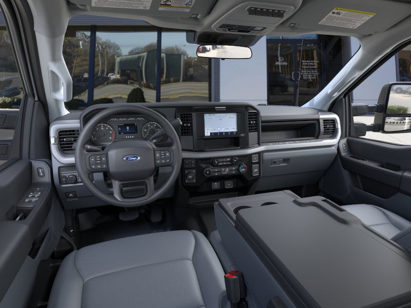 Oxford White 2026 Ford F-350SD XL CMF 4WD 10-Speed Automatic 7.3L V8 PFI OHV 16V Federal 335hp 4WD, 3-Ton Mechanical Jack, 4-Wheel Disc Brakes, 410 Amp Dual Alternators, 6 Speakers, ABS brakes, Air Conditioning, AM/FM radio, AM/FM Stereo w/MP3 Player, Brake assist, Center High-Mounted Stop Lamp (CHMSL), Cloth 40/20/40 Split Bench Seat, Compass, Delay-off headlights, Dual front impact airbags, Dual front side impact airbags, Electronic Stability Control, Electronic-Locking w/4.30 Axle Ratio, Emergency communication system: SYNC 4 911 Assist, Exterior Backup Alarm (Pre-Installed), Ford Connectivity Package (1-Year Included), Front anti-roll bar, Front Center Armrest w/Storage, Front License Plate Bracket, Front reading lights, Fully automatic headlights, GVWR: 11,300 lb Payload Package, Heated door mirrors, Illuminated entry, Interior Work Surface, Internet access capable: 5G Modem - Ford Connectivity Package, Low tire pressure warning, Outside temperature display, Overhead airbag, Overhead console, Panic alarm, Passenger cancellable airbag, Passenger vanity mirror, Platform Running Boards, Power door mirrors, Power steering, Power windows, Rear anti-roll bar, Rear View Camera & Prep Kit, Remote keyless entry, Security system, Speed control, Split folding rear seat, Steering wheel mounted audio controls, SYNC 4 Communication & Entertainment System, Tachometer, Telescoping steering wheel, Tilt steering wheel, Traction control, Trip computer, Turn signal indicator mirrors, Variably intermittent wipers, 4WD.