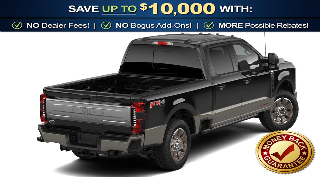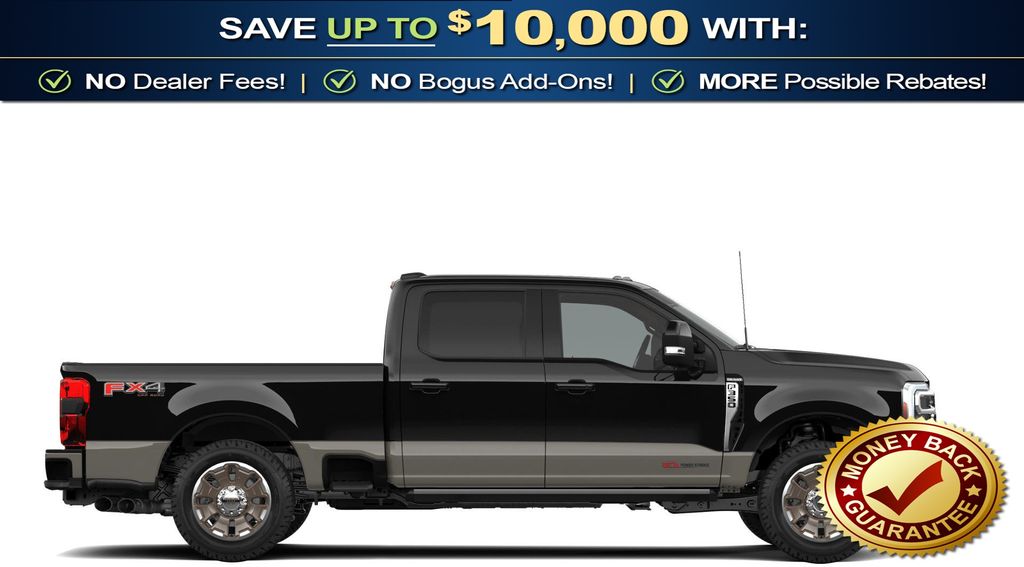 5th Wheel/Gooseneck Hitch Prep Package, Ford Connectivity Package (1-Year Included), FX4 Off-Road Package (Hill Descent Control, Off-Road Specifically Tuned Shock Absorbers, and Unique FX4 Off-Road Box Decal), Internet access capable: 5G Modem - Ford Connectivity Package, 4WD, 14 Speakers, 4-Wheel Disc Brakes, 410 Amp Dual Alternators, ABS brakes, Adjustable pedals, Air Conditioning, Alloy wheels, AM/FM radio: SiriusXM with 360L, Auto High-beam Headlights, Auto tilt-away steering wheel, Auto-dimming Rear-View mirror, Automatic temperature control, Brake assist, Compass, Delay-off headlights, Driver door bin, Driver vanity mirror, Dual front impact airbags, Dual front side impact airbags, Electronic Stability Control, Emergency communication system: SYNC 4 911 Assist, Engine Block Heater, Flow-Through Console, Front anti-roll bar, Front Bucket Seats, Front Center Armrest, Front dual zone A/C, Front fog lights, Front reading lights, Fully automatic headlights, Garage door transmitter, Heads-Up Display, Heated door mirrors, Heated front seats, Heated rear seats, Heated steering wheel, Illuminated entry, Leather steering wheel, LED Roof Clearance Lights, Low tire pressure warning, Memory seat, Navigation system: Connected Navigation, Outside temperature display, Overhead airbag, Overhead console, Panic alarm, Passenger door bin, Passenger vanity mirror, Pedal memory, Power door mirrors, Power driver seat, Power passenger seat, Power steering, Power windows, Radio: B&O Unleashed Sound System by Bang & Olufsen, Rain sensing wipers, Rapid-Heat Supplemental Cab Heater, Rear reading lights, Rear seat center armrest, Rear step bumper, Rear window defroster, Remote keyless entry, Security system, SiriusXM with 360L, Speed control, Split folding rear seat, Steering wheel memory, Steering wheel mounted A/C controls, Steering wheel mounted audio controls, SYNC 4 with Enhanced Voice Recognition, Tachometer, Telescoping steering wheel, Tilt steering wheel, Traction control, Trip computer, Turn signal indicator mirrors, Twin Panel Power Moonroof, Unique King Ranch Leather 40/Console/40 Seats, Upfitter Switches (6), Variably intermittent wipers, Ventilated front seats, and Wheels: 20" Bright Machined Aluminum.