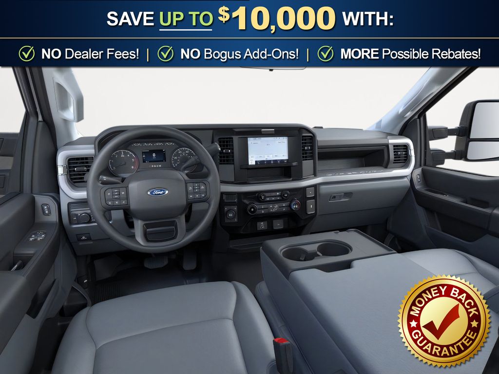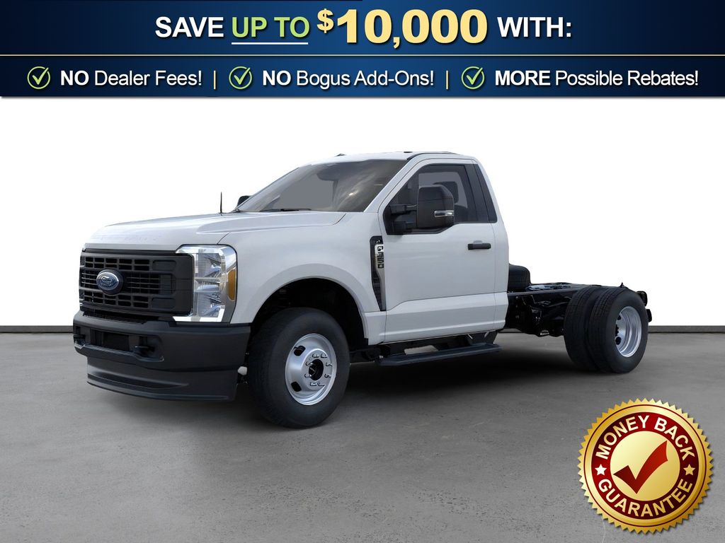 Oxford White 2026 Ford F-350SD XL DRW 4WD 10-Speed Automatic 7.3L V8 PFI OHV 16V Federal 335hp 4WD, ABS brakes, Compass, Heated door mirrors, Illuminated entry, Low tire pressure warning, Remote keyless entry, Traction control, 17" Argent Painted Steel Wheels, 3.73 Axle Ratio, 4 Speakers, 4-Wheel Disc Brakes, Air Conditioning, AM/FM radio, Brake assist, Delay-off headlights, Dual front impact airbags, Dual front side impact airbags, Dual rear wheels, Emergency communication system: SYNC 4 911 Assist, Ford Connectivity Package (1-Year Included), Front anti-roll bar, Front Center Armrest w/Storage, Front reading lights, Fully automatic headlights, Internet access capable: 5G Modem - Ford Connectivity Package, Outside temperature display, Overhead airbag, Overhead console, Panic alarm, Passenger cancellable airbag, Passenger vanity mirror, Power door mirrors, Power steering, Power windows, Rear anti-roll bar, Security system, Speed control, Steering wheel mounted audio controls, Tachometer, Telescoping steering wheel, Tilt steering wheel, Trip computer, Turn signal indicator mirrors, Variably intermittent wipers, 4WD, ABS brakes, Compass, Heated door mirrors, Illuminated entry, Low tire pressure warning, Remote keyless entry, Traction control.