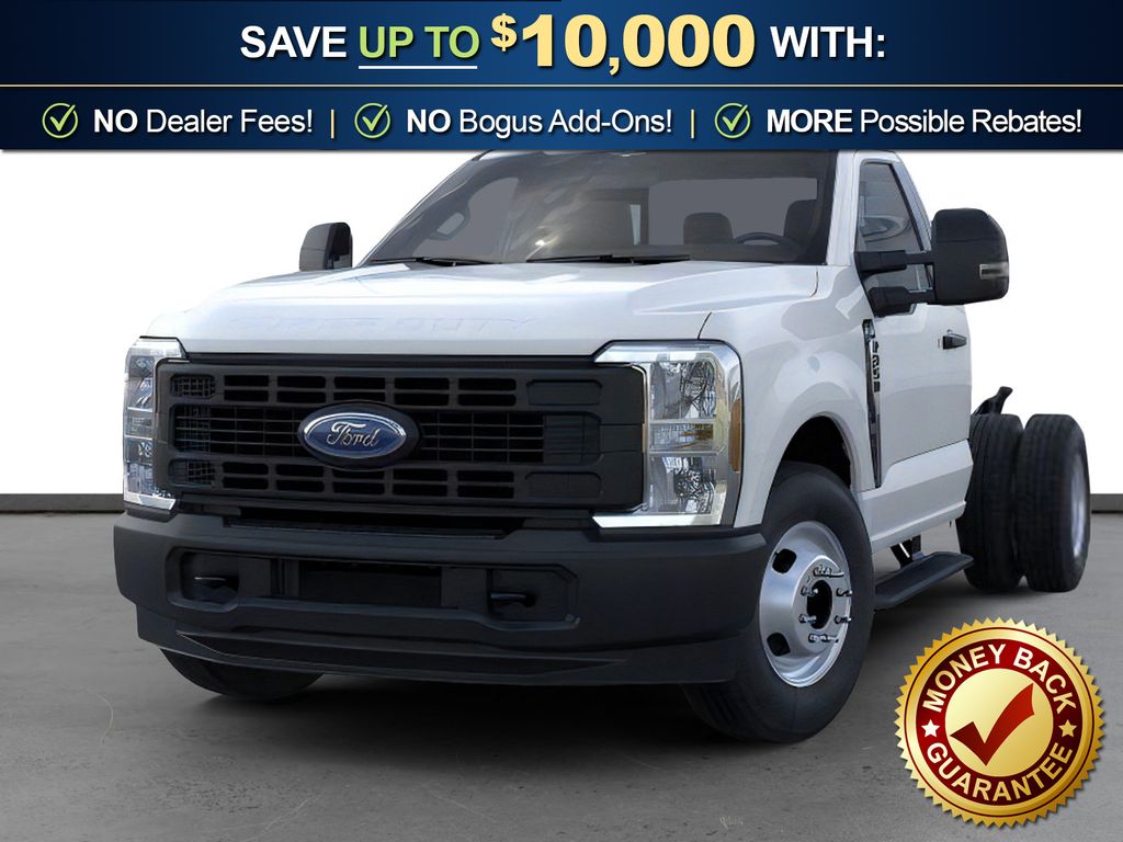Oxford White 2026 Ford F-350SD XL DRW RWD 10-Speed Automatic 7.3L V8 PFI OHV 16V Federal 335hp ABS brakes, Compass, Heated door mirrors, Illuminated entry, Low tire pressure warning, Remote keyless entry, Traction control.