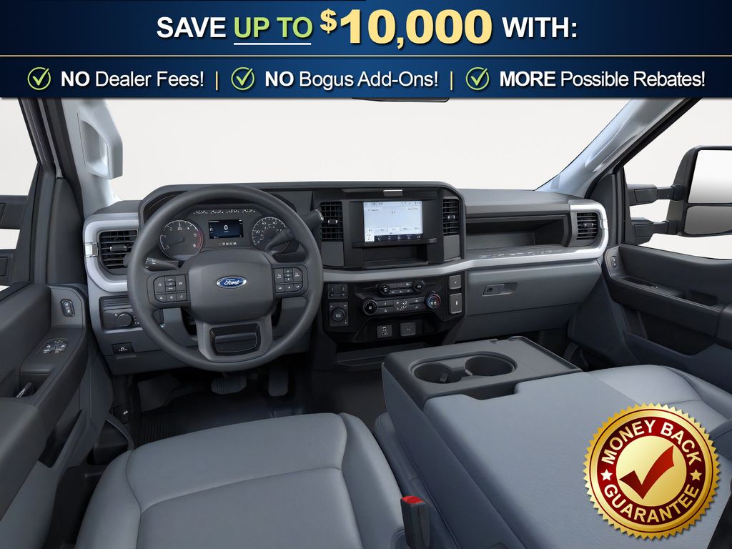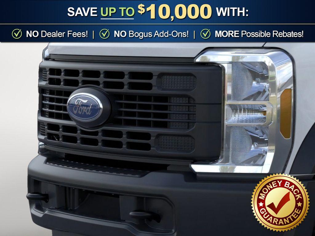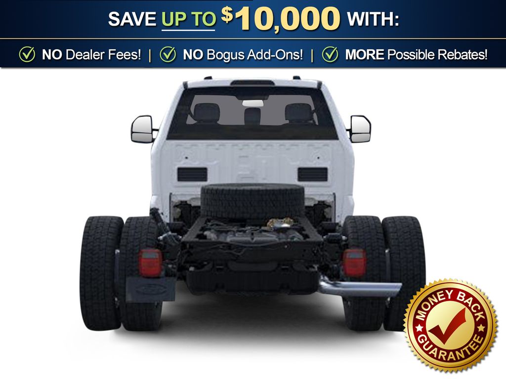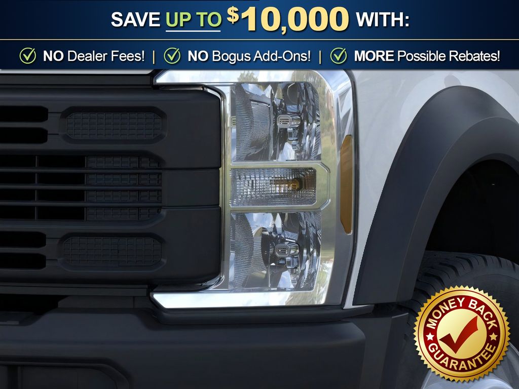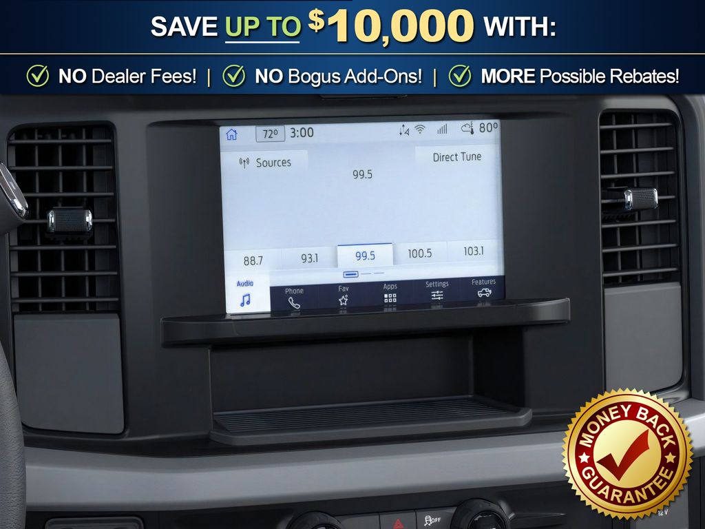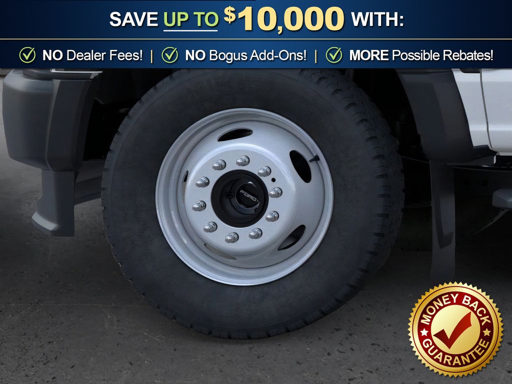Ford Connectivity Package (1-Year Included), GVWR: 18,000 lbs Payload Package, GVWR: 19,550 Lb Payload Plus Upgrade Package 2, Internet access capable: 5G Modem - Ford Connectivity Package, 4WD, 190 Amp Alternator, 4 Speakers, 4-Wheel Disc Brakes, 6-Ton Hydraulic Jack, ABS brakes, Air Conditioning, AM/FM radio, Brake assist, Compass, Delay-off headlights, Dual front impact airbags, Dual front side impact airbags, Dual rear wheels, Emergency communication system: SYNC 4 911 Assist, Engine Block Heater, Exterior Backup Alarm, Front anti-roll bar, Front Center Armrest w/Storage, Front License Plate Bracket, Front reading lights, Fully automatic headlights, HD Vinyl 40/20/40 Split Bench Seat, Heated door mirrors, Illuminated entry, Low tire pressure warning, Outside temperature display, Overhead airbag, Overhead console, Panic alarm, Passenger cancellable airbag, Passenger vanity mirror, Platform Running Boards, Power door mirrors, Power steering, Power windows, Radio: AM/FM Stereo with MP3 Player, Rear anti-roll bar, Rear View Camera and Prep Kit, Remote keyless entry, Security system, Speed control, Steering wheel mounted audio controls, SYNC 4, Tachometer, Telescoping steering wheel, Tilt steering wheel, Traction control, Trailer Brake Controller, Trip computer, Turn signal indicator mirrors, Variably intermittent wipers, and Wheels: 19.5" x 6" Argent Painted Steel.
