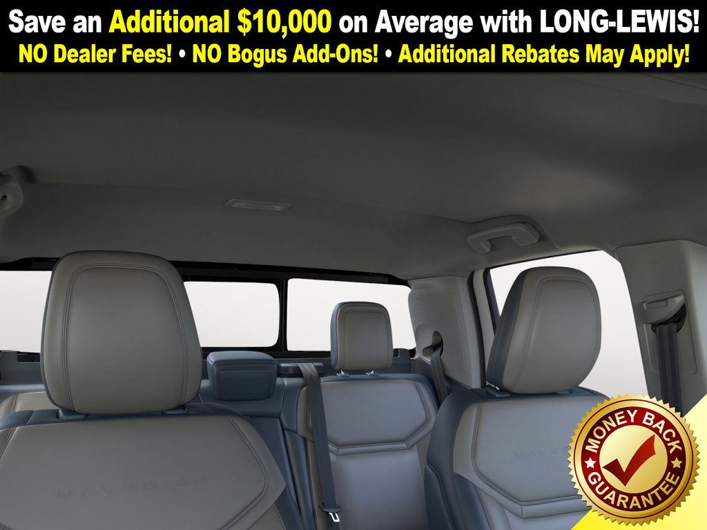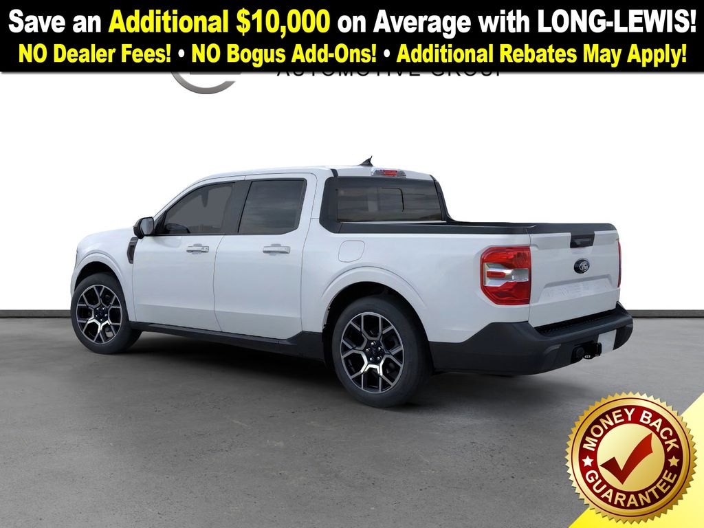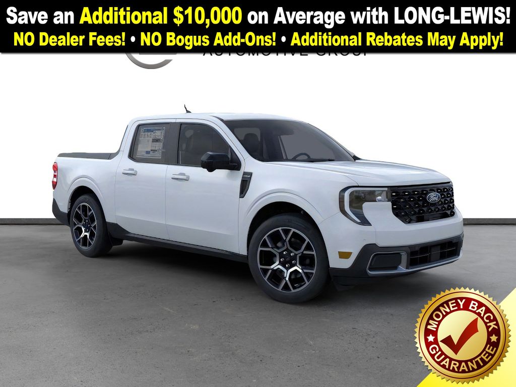 Space White Metallic 2026 Ford Maverick Lariat FCT AWD 8-Speed Automatic EcoBoost 2.0L I4 GTDi DOHC Turbocharged VCT 2.91 Axle Ratio, 4-Wheel Disc Brakes, 4K Tow Package, 8 Speakers, ABS brakes, ActiveX Trimmed Heated Front Bucket Seats, Air Conditioning, Alloy wheels, AM/FM radio: SiriusXM with 360L, Apple CarPlay/Android Auto, Auto High-beam Headlights, Automatic temperature control, Brake assist, Bumpers: body-color, Compass, Delay-off headlights, Driver door bin, Driver vanity mirror, Dual front impact airbags, Dual front side impact airbags, Electronic Stability Control, Emergency communication system: SYNC 4 911 Assist, Equipment Group 502A, Exterior Parking Camera Rear, Ford Connectivity Package (1-Year Included), Four wheel independent suspension, Front anti-roll bar, Front Bucket Seats, Front Center Armrest, Front dual zone A/C, Front reading lights, Fully automatic headlights, Heated door mirrors, Heated front seats, Heated steering wheel, Illuminated entry, Internet access capable: 5G Modem - Ford Connectivity Package, Knee airbag, Low tire pressure warning, Navigation system: Connected Navigation, Occupant sensing airbag, Outside temperature display, Overhead airbag, Overhead console, Panic alarm, Passenger door bin, Passenger vanity mirror, Power door mirrors, Power driver seat, Power steering, Power windows, Power-Sliding Rear Window, Radio data system, Radio: B&O Sound System by Bang and Olufsen, Rear anti-roll bar, Rear seat center armrest, Rear step bumper, Remote keyless entry, Security system, SiriusXM with 360L, Speed control, Speed-sensing steering, Steering wheel mounted audio controls, SYNC 4 with Enhanced Voice Recognition, Telescoping steering wheel, Tilt steering wheel, Traction control, Trailer Brake Controller, Trailer Hitch (class III) 2" Receiver, Trip computer, Upgraded Cooling Fan, Wheels: 19" Machined Aluminum Painted.