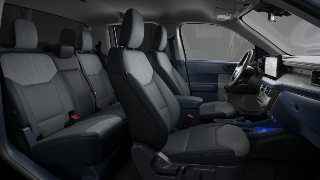 Ford Co-Pilot360 (Auto High Beams, BLIS with Cross-Traffic Alert and Trailer Coverage, Exit Warning, Intersection Assist, Lane-Keeping System, Power Glass Manual-Folding Mirrors, Pre-Collision Assist with Automatic Emergency Braking, Rear Cross Traffic Braking, Rear Parking Sensors, and Rear-View Camera), Ford Connectivity Package (1-Year Included), Internet access capable: 5G Modem - Ford Connectivity Package, XLT Luxury Package (Heated Mirror with Painted Black Skull Caps, Heated Seats, LED Box Lighting, Pro Power Onboard - 400W, Remote Start System, and Soft Vinyl Wrapped Heated Steering Wheel), 2.5L I-4 Hybrid, 2.91 Axle Ratio, 4-Wheel Disc Brakes, 6 Speakers, ABS brakes, Air Conditioning, Alloy wheels, AM/FM radio: SiriusXM with 360L, Apple CarPlay/Android Auto, Auto High-beam Headlights, Automatic temperature control, Brake assist, Bumpers: body-color, Compass, Delay-off headlights, Driver door bin, Driver vanity mirror, Dual front impact airbags, Dual front side impact airbags, Electronic Stability Control, Emergency communication system: SYNC 4 911 Assist, Exterior Parking Camera Rear, Front anti-roll bar, Front Bucket Seats, Front Center Armrest, Front reading lights, Front wheel independent suspension, Fully automatic headlights, Illuminated entry, Knee airbag, Low tire pressure warning, Occupant sensing airbag, Outside temperature display, Overhead airbag, Overhead console, Panic alarm, Passenger door bin, Passenger vanity mirror, Power door mirrors, Power steering, Power windows, Radio data system, Radio: AM/FM Stereo with 6 Speakers, Rear anti-roll bar, Rear seat center armrest, Rear step bumper, Remote keyless entry, Security system, SiriusXM with 360L, Speed control, Speed-sensing steering, Steering wheel mounted audio controls, SYNC 4 with Enhanced Voice Recognition, Telescoping steering wheel, Tilt steering wheel, Traction control, Trip computer, Unique Cloth Front Bucket Seats, and Wheels: 17" Carbonized Gray Painted Aluminum.