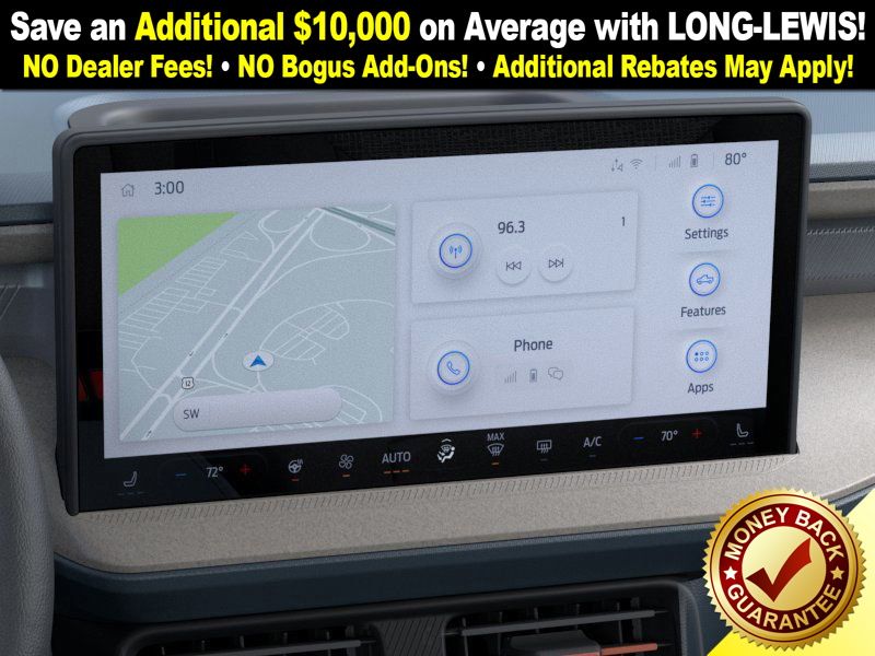 Oxford White 2026 Ford Maverick Lariat NFT AWD 8-Speed Automatic EcoBoost 2.0L I4 GTDi DOHC Turbocharged VCT 2.91 Axle Ratio, 4-Wheel Disc Brakes, 4K Tow Package, 8 Speakers, ABS brakes, ActiveX Trimmed Heated Front Bucket Seats, Air Conditioning, Alloy wheels, AM/FM radio: SiriusXM with 360L, Apple CarPlay/Android Auto, Auto High-beam Headlights, Automatic temperature control, Brake assist, Bumpers: body-color, Compass, Delay-off headlights, Driver door bin, Driver vanity mirror, Dual front impact airbags, Dual front side impact airbags, Electronic Stability Control, Emergency communication system: SYNC 4 911 Assist, Exterior Parking Camera Rear, Ford Connectivity Package (1-Year Included), Four wheel independent suspension, Front anti-roll bar, Front Bucket Seats, Front Center Armrest, Front dual zone A/C, Front reading lights, Fully automatic headlights, Heated door mirrors, Heated front seats, Heated steering wheel, Illuminated entry, Internet access capable: 5G Modem - Ford Connectivity Package, Knee airbag, Low tire pressure warning, Navigation system: Connected Navigation, Occupant sensing airbag, Outside temperature display, Overhead airbag, Overhead console, Panic alarm, Passenger door bin, Passenger vanity mirror, Power door mirrors, Power driver seat, Power steering, Power windows, Power-Sliding Rear Window, Radio data system, Radio: B&O Sound System by Bang and Olufsen, Rear anti-roll bar, Rear seat center armrest, Rear step bumper, Remote keyless entry, Security system, SiriusXM with 360L, Speed control, Speed-sensing steering, Steering wheel mounted audio controls, SYNC 4 with Enhanced Voice Recognition, Telescoping steering wheel, Tilt steering wheel, Traction control, Trailer Brake Controller, Trailer Hitch (class III) 2" Receiver, Trip computer, Upgraded Cooling Fan, Wheels: 19" Machined Aluminum Painted.
