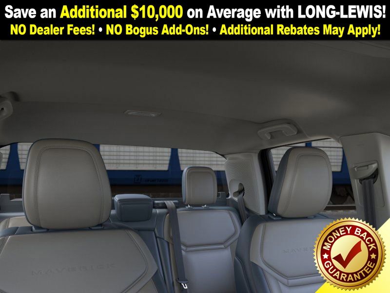 Dealer Discount of $947 off MSRP Shadow Black 2026 Ford Maverick Lariat NFT AWD 8-Speed Automatic EcoBoost 2.0L I4 GTDi DOHC Turbocharged VCT 2.91 Axle Ratio, 4-Wheel Disc Brakes, 4K Tow Package, 8 Speakers, ABS brakes, ActiveX Trimmed Heated Front Bucket Seats, Air Conditioning, Alloy wheels, AM/FM radio: SiriusXM with 360L, Apple CarPlay/Android Auto, Auto High-beam Headlights, Automatic temperature control, Brake assist, Bumpers: body-color, Compass, Delay-off headlights, Driver door bin, Driver vanity mirror, Dual front impact airbags, Dual front side impact airbags, Electronic Stability Control, Emergency communication system: SYNC 4 911 Assist, Exterior Parking Camera Rear, Ford Connectivity Package (1-Year Included), Four wheel independent suspension, Front anti-roll bar, Front Bucket Seats, Front Center Armrest, Front dual zone A/C, Front reading lights, Fully automatic headlights, Heated door mirrors, Heated front seats, Heated steering wheel, Illuminated entry, Internet access capable: 5G Modem - Ford Connectivity Package, Knee airbag, Low tire pressure warning, Navigation system: Connected Navigation, Occupant sensing airbag, Outside temperature display, Overhead airbag, Overhead console, Panic alarm, Passenger door bin, Passenger vanity mirror, Power door mirrors, Power driver seat, Power steering, Power windows, Radio data system, Radio: B&O Sound System by Bang and Olufsen, Rear anti-roll bar, Rear seat center armrest, Rear step bumper, Remote keyless entry, Security system, SiriusXM with 360L, Speed control, Speed-sensing steering, Steering wheel mounted audio controls, SYNC 4 with Enhanced Voice Recognition, Telescoping steering wheel, Tilt steering wheel, Traction control, Trailer Brake Controller, Trailer Hitch (class III) 2" Receiver, Trip computer, Upgraded Cooling Fan, Wheels: 19" Machined Aluminum Painted.