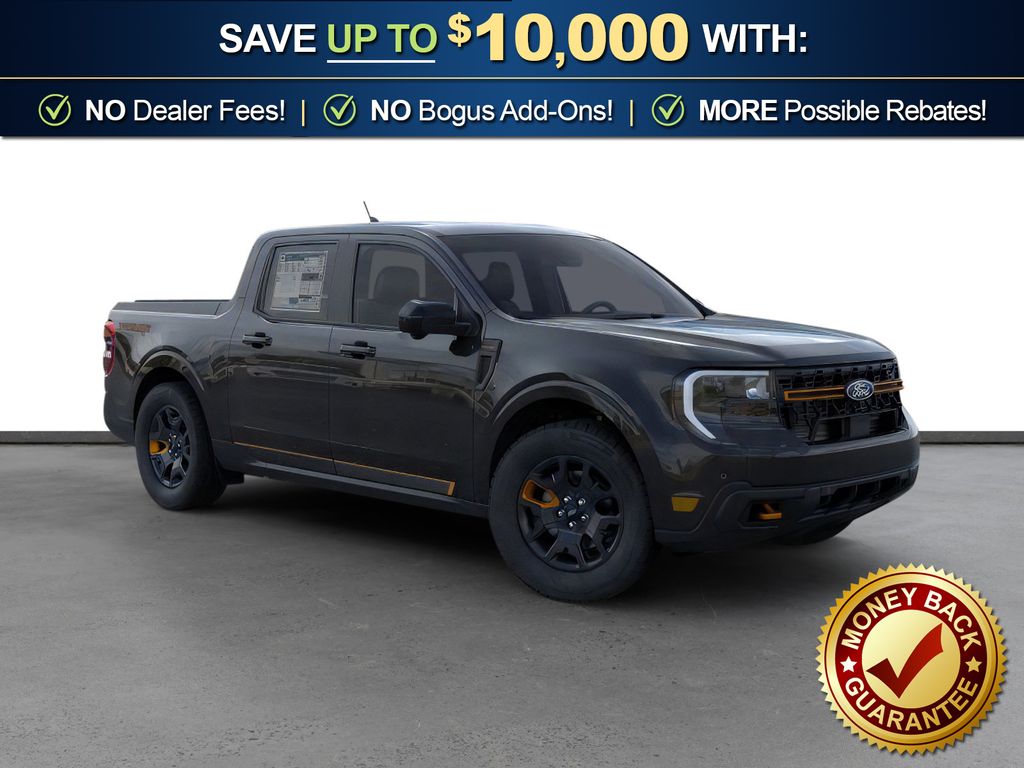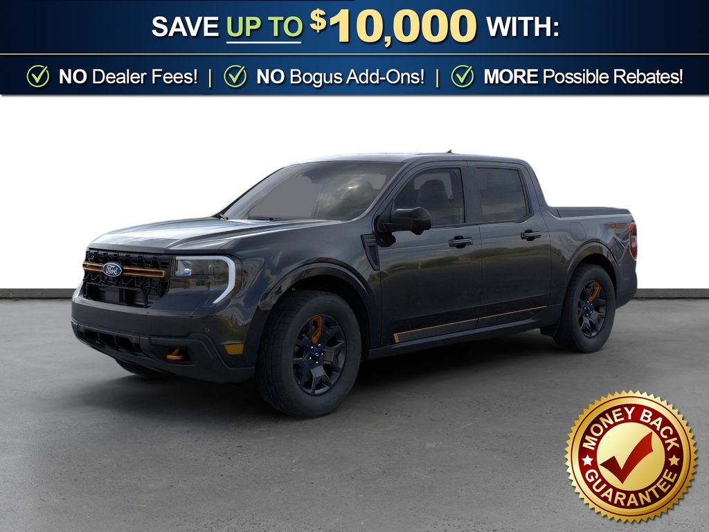 Shadow Black 2026 Ford Maverick Tremor NFT AWD 8-Speed Automatic EcoBoost 2.0L I4 GTDi DOHC Turbocharged VCT 3.63 Axle Ratio, 4-Wheel Disc Brakes, 8 Speakers, ABS brakes, ActiveX Trimmed Heated Front Bucket Seats, Air Conditioning, Alloy wheels, AM/FM radio: SiriusXM with 360L, Apple CarPlay/Android Auto, Auto High-beam Headlights, Automatic temperature control, Brake assist, Bumpers: body-color, Compass, Delay-off headlights, Driver door bin, Driver vanity mirror, Dual front impact airbags, Dual front side impact airbags, Electronic Stability Control, Emergency communication system: SYNC 4 911 Assist, Exterior Parking Camera Rear, Ford Connectivity Package (1-Year Included), Four wheel independent suspension, Front anti-roll bar, Front Bucket Seats, Front Center Armrest, Front dual zone A/C, Front reading lights, Fully automatic headlights, Heated door mirrors, Heated front seats, Heated steering wheel, Illuminated entry, Internet access capable: 5G Modem - Ford Connectivity Package, Knee airbag, Low tire pressure warning, Navigation system: Connected Navigation, Occupant sensing airbag, Outside temperature display, Overhead airbag, Overhead console, Panic alarm, Passenger door bin, Passenger vanity mirror, Power door mirrors, Power driver seat, Power Moonroof, Power steering, Power windows, Radio data system, Radio: AM/FM Stereo with 8 Speakers, Rear anti-roll bar, Rear seat center armrest, Rear step bumper, Remote keyless entry, Security system, SiriusXM with 360L, Speed control, Speed-sensing steering, Steering wheel mounted audio controls, SYNC 4 with Enhanced Voice Recognition, Tachometer, Telescoping steering wheel, Tilt steering wheel, Traction control, Trip computer, Wheels: 17" Machined-Face Tarnished Dark Painted.