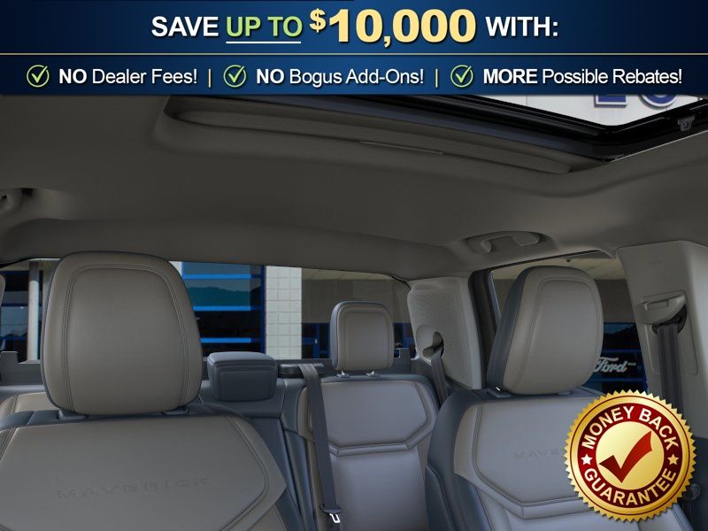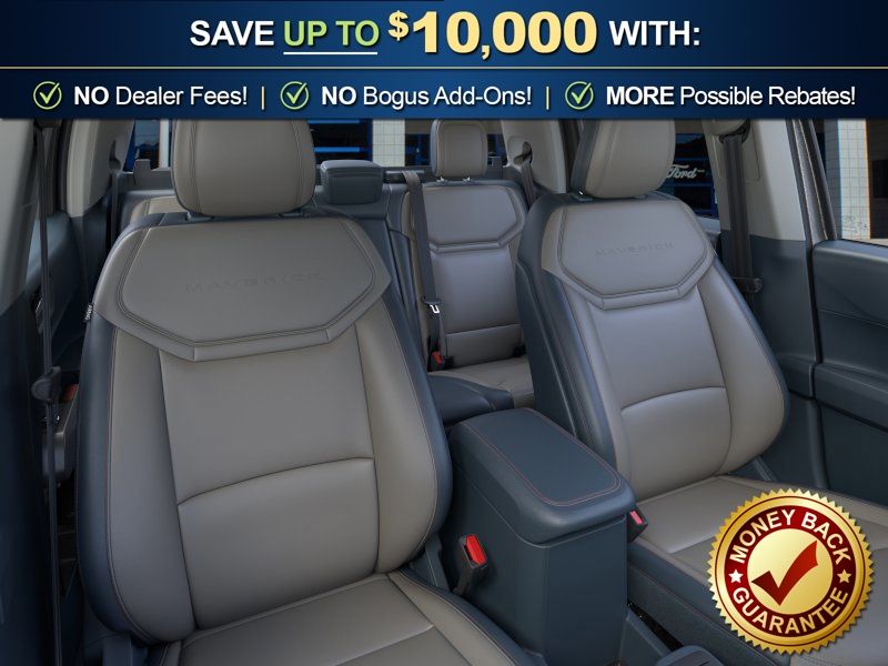 Dealer Discount of $1,027 off MSRP Carbonized Gray Metallic 2026 Ford Maverick Lariat NFT AWD 8-Speed Automatic EcoBoost 2.0L I4 GTDi DOHC Turbocharged VCT 2.91 Axle Ratio, 4-Wheel Disc Brakes, 4K Tow Package, 8 Speakers, ABS brakes, ActiveX Trimmed Heated Front Bucket Seats, Air Conditioning, Alloy wheels, AM/FM radio: SiriusXM with 360L, Apple CarPlay/Android Auto, Auto High-beam Headlights, Automatic temperature control, Brake assist, Bumpers: body-color, Compass, Delay-off headlights, Driver door bin, Driver vanity mirror, Dual front impact airbags, Dual front side impact airbags, Electronic Stability Control, Emergency communication system: SYNC 4 911 Assist, Equipment Group 502A, Exterior Parking Camera Rear, Ford Connectivity Package (1-Year Included), Four wheel independent suspension, Front anti-roll bar, Front Bucket Seats, Front Center Armrest, Front dual zone A/C, Front reading lights, Fully automatic headlights, Heated door mirrors, Heated front seats, Heated steering wheel, Illuminated entry, Internet access capable: 5G Modem - Ford Connectivity Package, Knee airbag, Low tire pressure warning, Navigation system: Connected Navigation, Occupant sensing airbag, Outside temperature display, Overhead airbag, Overhead console, Panic alarm, Passenger door bin, Passenger vanity mirror, Power door mirrors, Power driver seat, Power Moonroof, Power steering, Power windows, Radio data system, Radio: B&O Sound System by Bang and Olufsen, Rear anti-roll bar, Rear seat center armrest, Rear step bumper, Remote keyless entry, Security system, SiriusXM with 360L, Speed control, Speed-sensing steering, Steering wheel mounted audio controls, SYNC 4 with Enhanced Voice Recognition, Telescoping steering wheel, Tilt steering wheel, Traction control, Trailer Brake Controller, Trailer Hitch (class III) 2" Receiver, Trip computer, Upgraded Cooling Fan, Wheels: 19" Machined Aluminum Painted.