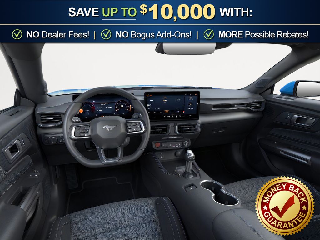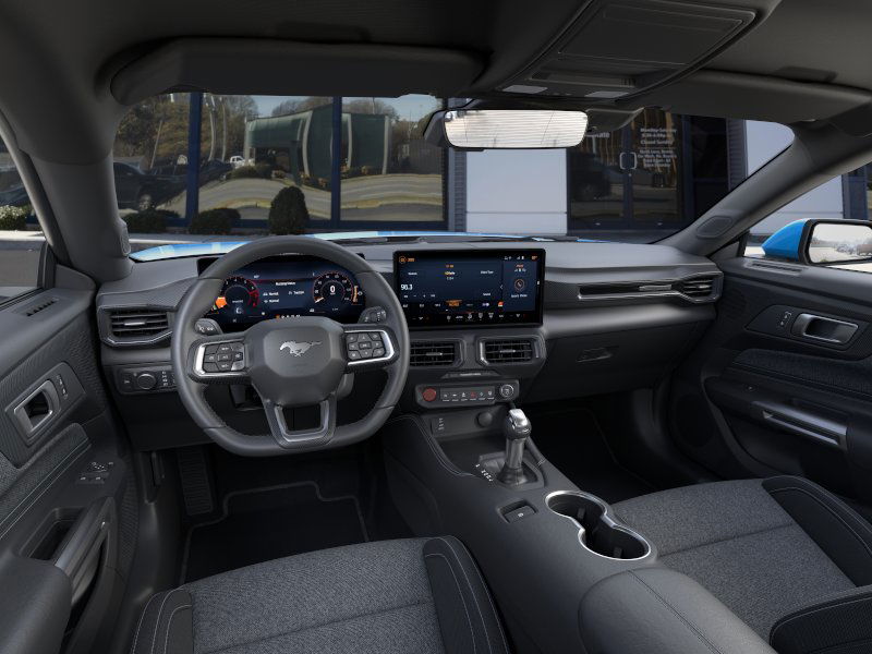 Grabber Blue Metallic 2026 Ford Mustang NFC RWD 10-Speed Automatic EcoBoost 2.3L I4 GTDi DOHC Turbocharged VCT 1st Row Carpeted Black Floor Mats, 4-Wheel Disc Brakes, ABS brakes, Air Conditioning, Alloy wheels, AM/FM Stereo, Auto High-beam Headlights, Automatic temperature control, Brake assist, Bumpers: body-color, Compass, Delay-off headlights, Driver door bin, Driver vanity mirror, Dual front impact airbags, Dual front side impact airbags, Electronic Stability Control, Emergency communication system: 911 Assist, Exterior Parking Camera Rear, Four wheel independent suspension, Front anti-roll bar, Front Bucket Seats, Front Center Armrest, Front dual zone A/C, Front reading lights, Fully automatic headlights, Illuminated entry, Knee airbag, Leather Shift Knob, Low tire pressure warning, Occupant sensing airbag, Outside temperature display, Overhead airbag, Overhead console, Panic alarm, Passenger door bin, Passenger vanity mirror, Power door mirrors, Power steering, Power windows, Radio data system, Rain sensing wipers, Rear anti-roll bar, Rear Parking Sensors, Rear window defroster, Remote keyless entry, Speed control, Speed-sensing steering, Speed-Sensitive Wipers, Split folding rear seat, Sport steering wheel, Steering wheel mounted audio controls, SYNC 4, Tachometer, Telescoping steering wheel, Tilt steering wheel, Traction control, Trip computer, Variably intermittent wipers, Voltmeter, Wheels: 18" x 8" Painted Shadow Silver Cast Aluminum.