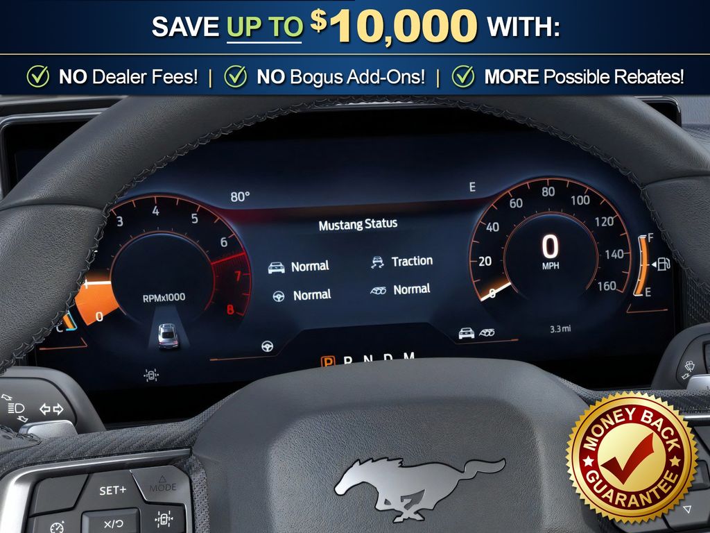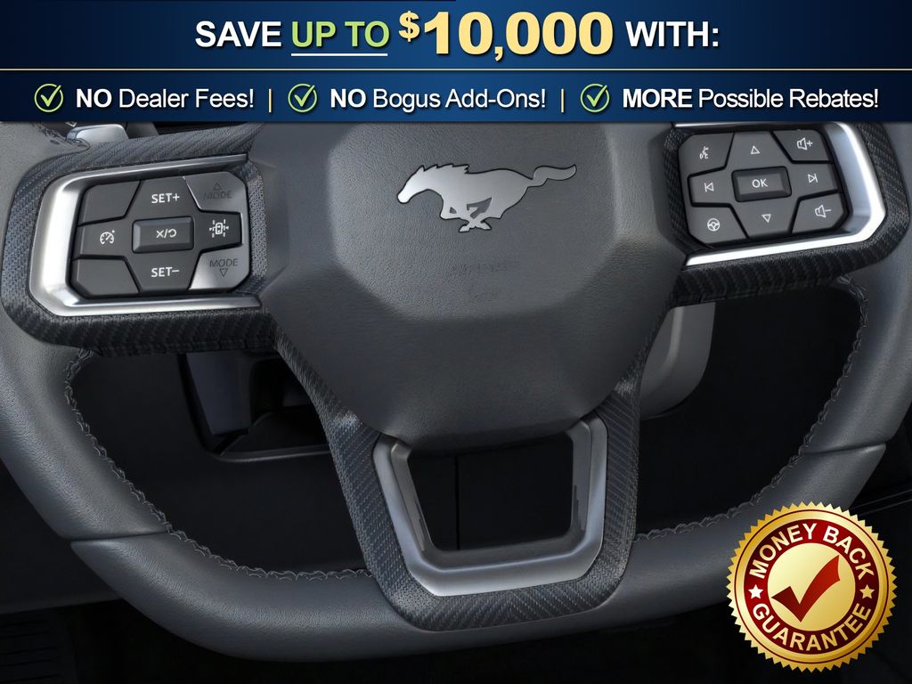 Shadow Black 2026 Ford Mustang NFC RWD 10-Speed Automatic 5.0L V8 Ti-VCT 1st Row Carpeted Black Floor Mats, 4-Wheel Disc Brakes, ABS brakes, Active Valve Performance Exhaust, Air Conditioning, Alloy wheels, AM/FM Stereo, Auto High-beam Headlights, Automatic temperature control, Brake assist, Bumpers: body-color, Cloth/Vinyl Heated Bucket Seats, Compass, Delay-off headlights, Driver door bin, Driver vanity mirror, Dual front impact airbags, Dual front side impact airbags, Electronic Stability Control, Emergency communication system: 911 Assist, Exterior Parking Camera Rear, Four wheel independent suspension, Front anti-roll bar, Front Bucket Seats, Front Center Armrest, Front dual zone A/C, Front reading lights, Fully automatic headlights, Illuminated entry, Knee airbag, Leather Shift Knob, Leather steering wheel, Low tire pressure warning, Occupant sensing airbag, Outside temperature display, Overhead airbag, Overhead console, Panic alarm, Passenger door bin, Passenger vanity mirror, Power door mirrors, Power steering, Power windows, Radio data system, Rain sensing wipers, Rear anti-roll bar, Rear Parking Sensors, Rear window defroster, RECARO Leather-Trimmed Sport Seats, Remote keyless entry, Speed control, Speed-sensing steering, Speed-Sensitive Wipers, Split folding rear seat, Sport steering wheel, Steering wheel mounted audio controls, SYNC 4, Tachometer, Telescoping steering wheel, Tilt steering wheel, Traction control, Trip computer, Variably intermittent wipers, Voltmeter.