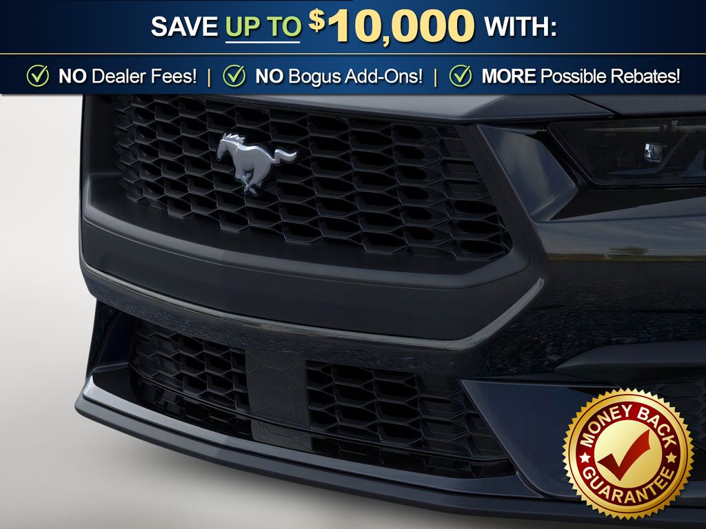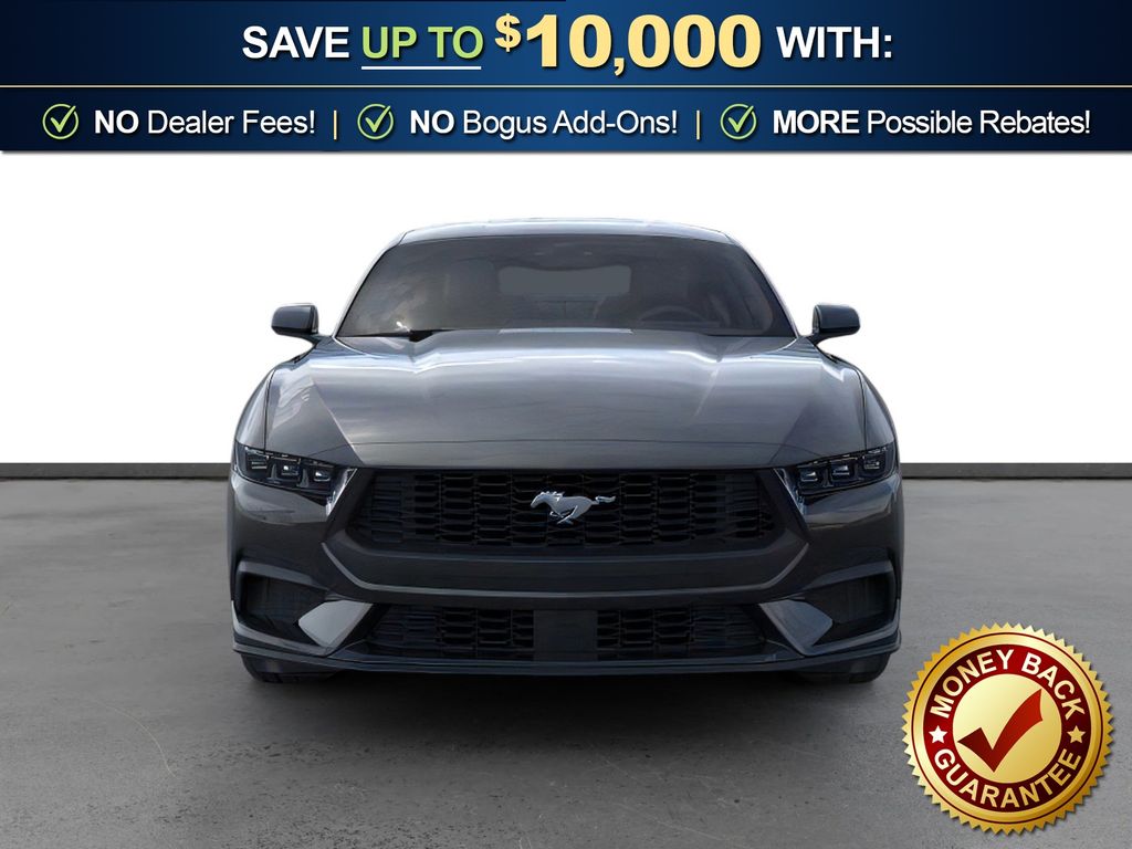 Dealer Discount of $1,557 off MSRP Shadow Black 2026 Ford Mustang NFC RWD 10-Speed Automatic EcoBoost 2.3L I4 GTDi DOHC Turbocharged VCT 1st Row Carpeted Black Floor Mats, 4-Wheel Disc Brakes, ABS brakes, Air Conditioning, Alloy wheels, AM/FM Stereo, Auto High-beam Headlights, Automatic temperature control, Brake assist, Bumpers: body-color, Compass, Delay-off headlights, Driver door bin, Driver vanity mirror, Dual front impact airbags, Dual front side impact airbags, Electronic Stability Control, Emergency communication system: 911 Assist, Exterior Parking Camera Rear, Four wheel independent suspension, Front anti-roll bar, Front Bucket Seats, Front Center Armrest, Front dual zone A/C, Front reading lights, Fully automatic headlights, Illuminated entry, Knee airbag, Leather Shift Knob, Low tire pressure warning, Occupant sensing airbag, Outside temperature display, Overhead airbag, Overhead console, Panic alarm, Passenger door bin, Passenger vanity mirror, Power door mirrors, Power steering, Power windows, Radio data system, Rain sensing wipers, Rear anti-roll bar, Rear Parking Sensors, Rear window defroster, Remote keyless entry, Speed control, Speed-sensing steering, Speed-Sensitive Wipers, Split folding rear seat, Sport steering wheel, Steering wheel mounted audio controls, SYNC 4, Tachometer, Telescoping steering wheel, Tilt steering wheel, Traction control, Trip computer, Variably intermittent wipers, Voltmeter, Wheels: 18" x 8" Painted Shadow Silver Cast Aluminum.