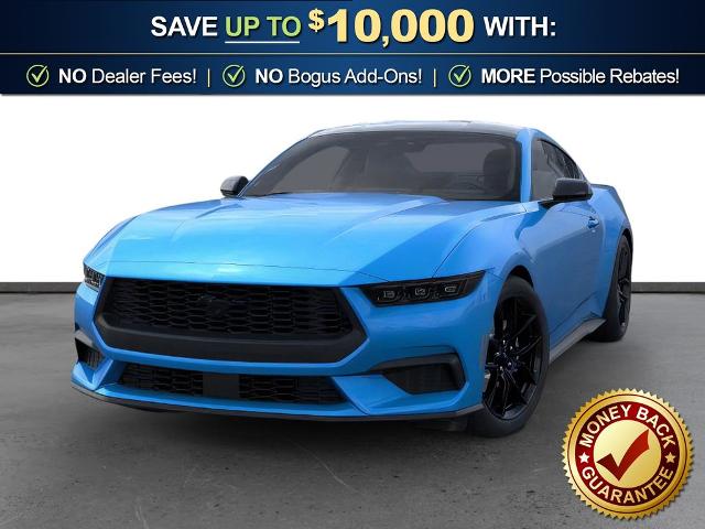 Dealer Discount of $1,874 off MSRP Grabber Blue Metallic 2026 Ford Mustang FCT RWD 10-Speed Automatic EcoBoost 2.3L I4 GTDi DOHC Turbocharged VCT 1st Row Carpeted Black Floor Mats, 4-Wheel Disc Brakes, ABS brakes, Air Conditioning, Alloy wheels, AM/FM Stereo, Auto High-beam Headlights, Automatic temperature control, Black Front and Rear Pony Badges, Black Mirror Caps, Brake assist, Bumpers: body-color, Compass, Delay-off headlights, Driver door bin, Driver vanity mirror, Dual front impact airbags, Dual front side impact airbags, Electronic Stability Control, Emergency communication system: 911 Assist, Exterior Parking Camera Rear, Four wheel independent suspension, Front anti-roll bar, Front Bucket Seats, Front Center Armrest, Front dual zone A/C, Front reading lights, Fully automatic headlights, Illuminated entry, Knee airbag, Leather Shift Knob, Low tire pressure warning, Mustang Nite Pony Package, Occupant sensing airbag, Outside temperature display, Overhead airbag, Overhead console, Painted Black Roof, Panic alarm, Passenger door bin, Passenger vanity mirror, Power door mirrors, Power steering, Power windows, Radio data system, Rain sensing wipers, Rear anti-roll bar, Rear Parking Sensors, Rear window defroster, Remote keyless entry, Speed control, Speed-sensing steering, Speed-Sensitive Wipers, Split folding rear seat, Sport steering wheel, Steering wheel mounted audio controls, SYNC 4, Tachometer, Telescoping steering wheel, Tilt steering wheel, Traction control, Trip computer, Variably intermittent wipers, Voltmeter, Wheels: 18" x 8" Painted Shadow Silver Cast Aluminum, Wheels: 19" x 8.5" Ebony Black-Painted Aluminum.