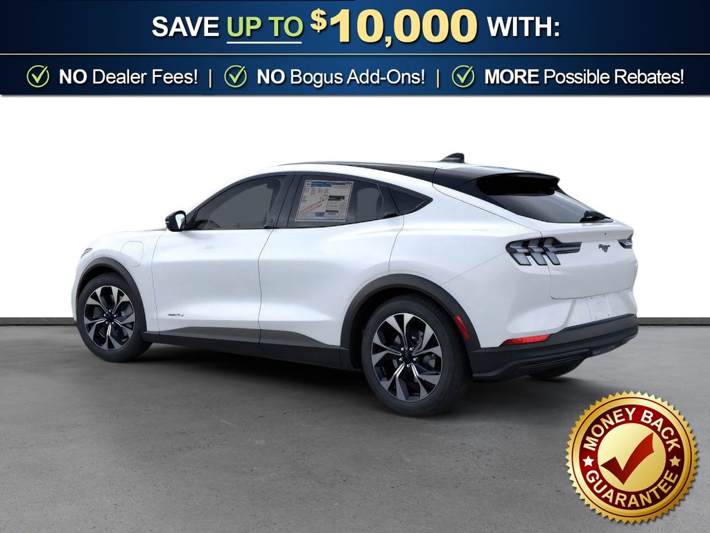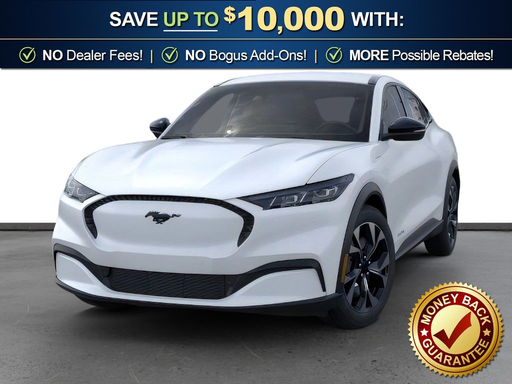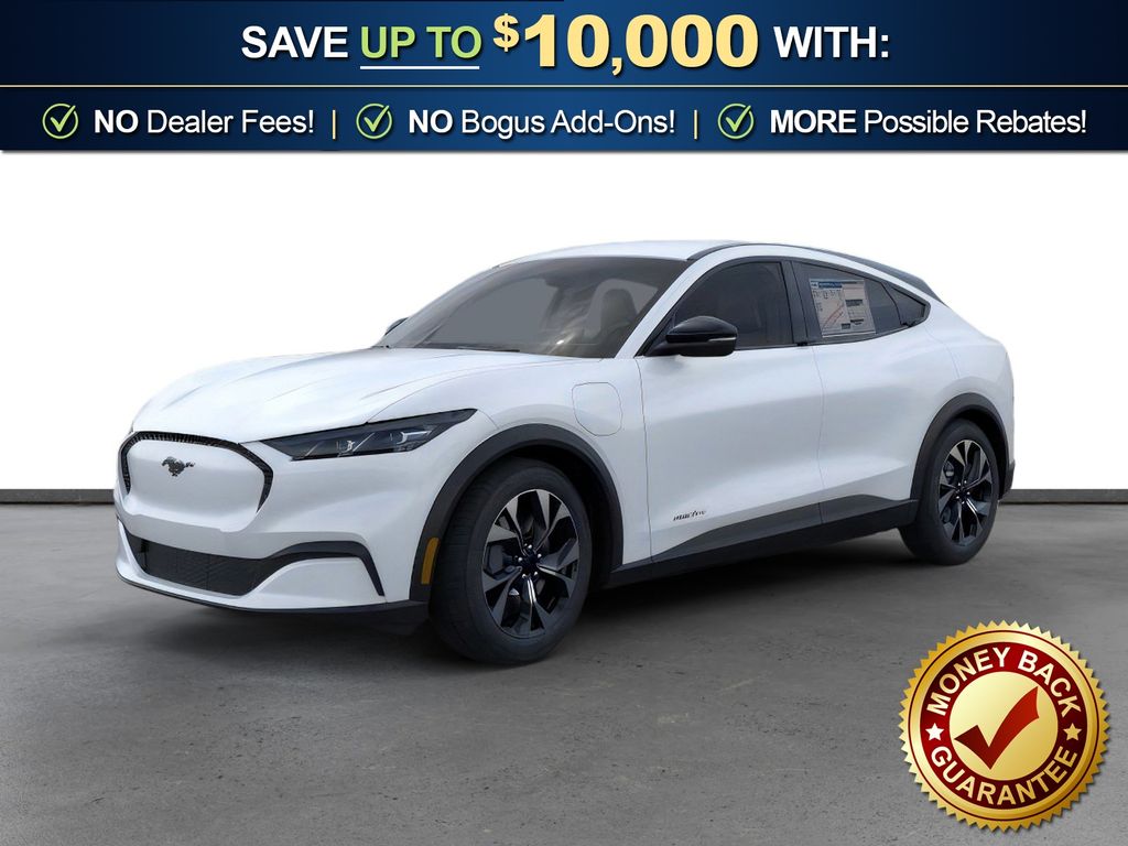 Star White Metallic Tri-Coat 2026 Ford Mustang Mach-E Select NFT RWD Single-Speed Automatic Dual Electric Motor 4-Wheel Disc Brakes, 6 Speakers, ABS brakes, ActiveX Bucket Seats, Air Conditioning, Alloy wheels, AM/FM radio: SiriusXM with 360L, AM/FM Stereo, Apple CarPlay/Android Auto, Auto High-beam Headlights, Auto-dimming Rear-View mirror, Automatic temperature control, Brake assist, Bumpers: body-color, Compass, Delay-off headlights, Driver door bin, Driver vanity mirror, Dual front impact airbags, Dual front side impact airbags, Electronic Stability Control, Emergency communication system: 911 Assist, Equipment Group 100A Standard Package, Exterior Parking Camera Rear, Four wheel independent suspension, Front anti-roll bar, Front Bucket Seats, Front Center Armrest, Front dual zone A/C, Front License Plate Bracket, Front reading lights, Fully automatic headlights, Heated door mirrors, Illuminated entry, Knee airbag, Low tire pressure warning, Mobile Power Cord (120V/240V), Navigation system: Connected Navigation, Occupant sensing airbag, Outside temperature display, Overhead airbag, Overhead console, Panic alarm, Passenger door bin, Passenger vanity mirror, Power door mirrors, Power driver seat, Power steering, Power windows, Radio data system, Rain sensing wipers, Rear anti-roll bar, Rear seat center armrest, Rear side impact airbag, Rear window defroster, Rear window wiper, Remote keyless entry, Security system, SiriusXM with 360L, Speed control, Speed-sensing steering, Speed-Sensitive Wipers, Split folding rear seat, Spoiler, Steering wheel mounted audio controls, SYNC 4A with Enhanced Voice Recognition, Telescoping steering wheel, Tilt steering wheel, Tire Inflator and Sealant Kit, Traction control, Trip computer, Turn signal indicator mirrors, Variably intermittent wipers, Wheels: 19" Machined-Face Aluminum.