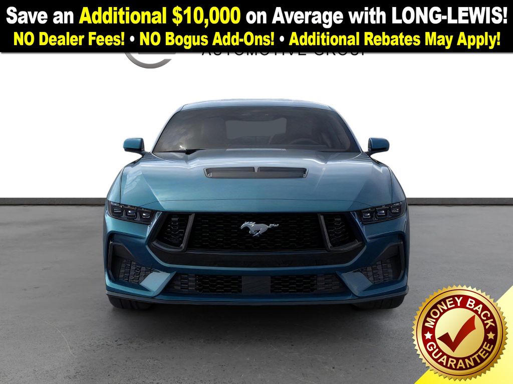 Adriatic Blue Metallic 2026 Ford Mustang NFC RWD 5.0L V8 Ti-VCT 4-Wheel Disc Brakes, ABS brakes, Air Conditioning, Alloy wheels, AM/FM Stereo, Auto High-beam Headlights, Automatic temperature control, Brake assist, Bumpers: body-color, Compass, Delay-off headlights, Driver door bin, Driver vanity mirror, Dual front impact airbags, Dual front side impact airbags, Electronic Stability Control, Emergency communication system: 911 Assist, Exterior Parking Camera Rear, Four wheel independent suspension, Front anti-roll bar, Front Bucket Seats, Front Center Armrest, Front dual zone A/C, Front reading lights, Fully automatic headlights, Illuminated entry, Knee airbag, Leather Shift Knob, Leather steering wheel, Low tire pressure warning, Occupant sensing airbag, Outside temperature display, Overhead airbag, Overhead console, Panic alarm, Passenger door bin, Passenger vanity mirror, Power door mirrors, Power steering, Power windows, Radio data system, Rain sensing wipers, Rear anti-roll bar, Rear Parking Sensors, Rear window defroster, Remote keyless entry, Speed control, Speed-sensing steering, Speed-Sensitive Wipers, Split folding rear seat, Sport steering wheel, Steering wheel mounted audio controls, SYNC 4, Tachometer, Telescoping steering wheel, Tilt steering wheel, Traction control, Trip computer, Variably intermittent wipers, Voltmeter.