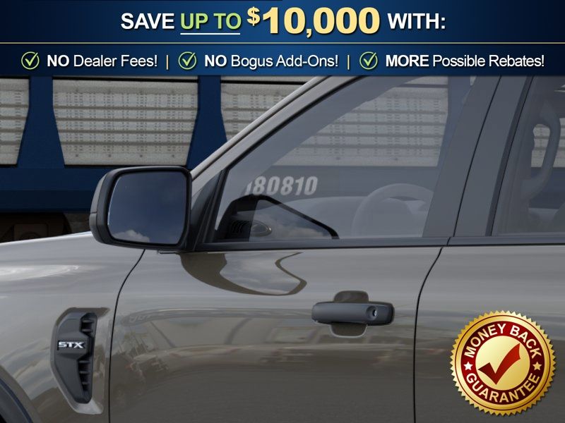 STX Appearance Package (Halogen Fog Lamps, LED Reflector Headlamps, STX Fender Badge, and Wheels: 17" Silver-Painted Aluminum), Trailer Tow Package (Class IV Trailer Hitch Receiver), 3.73 Axle Ratio, 4-Wheel Disc Brakes, 6 Speakers, ABS brakes, Air Conditioning, Alloy wheels, AM/FM radio, AM/FM Stereo, Auto High-beam Headlights, Brake assist, Bumpers: body-color, Carpet Floor Covering with Carpet Floor Mats, Cloth Front Bucket Seats, Compass, Delay-off headlights, Driver door bin, Dual front impact airbags, Dual front side impact airbags, Electronic Stability Control, Emergency communication system: SYNC 4 911 Assist, Front anti-roll bar, Front Bucket Seats, Front Center Armrest, Front fog lights, Front reading lights, Front wheel independent suspension, Fully automatic headlights, Illuminated entry, Low tire pressure warning, Occupant sensing airbag, Outside temperature display, Overhead airbag, Overhead console, Panic alarm, Passenger door bin, Power door mirrors, Power steering, Power windows, Rear reading lights, Rear seat center armrest, Rear step bumper, Remote keyless entry, Security system, Speed control, Speed-sensing steering, Steering wheel mounted audio controls, SYNC 4A, Telescoping steering wheel, Tilt steering wheel, Traction control, Trip computer, Variably intermittent wipers, and Voltmeter.