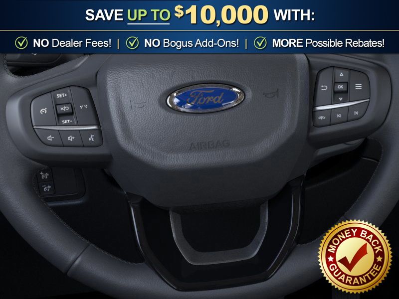 Black Appearance Package (Black Center Bar and Surround Grille, Black Rear Bumper, Body-Color Painted Front Fascia, Front and Rear Black Ford Ovals, Painted Body-Color Wheel Lip Molding, Unique Carpet Mats, and Wheels: 18" Black Painted Aluminum), Sport Appearance Package (Gray Painted Center Bar and Grille Surround, Gray Painted Front Fascia and Rear Bumper, Sport Box Decal, and Wheels: 17 Inch Gray-Painted Aluminum Alloy Sport), Trailer Tow Package (Class IV Trailer Hitch Receiver), 4WD, 3.73 Axle Ratio, 4-Wheel Disc Brakes, 6 Speakers, ABS brakes, Air Conditioning, Alloy wheels, AM/FM radio: SiriusXM with 360L, AM/FM Stereo, Auto High-beam Headlights, Auto-dimming Rear-View mirror, Brake assist, Cloth Front Bucket Seats, Compass, Delay-off headlights, Driver door bin, Driver vanity mirror, Dual front impact airbags, Dual front side impact airbags, Electronic Stability Control, Emergency communication system: SYNC 4 911 Assist, Front anti-roll bar, Front Bucket Seats, Front Center Armrest, Front fog lights, Front reading lights, Front wheel independent suspension, Fully automatic headlights, Illuminated entry, Leather Shift Knob, Low tire pressure warning, Navigation system: Connected Navigation, Occupant sensing airbag, Outside temperature display, Overhead airbag, Overhead console, Panic alarm, Passenger door bin, Passenger vanity mirror, Power door mirrors, Power steering, Power windows, Rear reading lights, Rear seat center armrest, Rear step bumper, Rear window defroster, Remote keyless entry, Security system, SiriusXM with 360L and 3-Month Trial Subscription, Speed control, Speed-sensing steering, Steering wheel mounted audio controls, SYNC 4A with Connected Navigation, Telescoping steering wheel, Tilt steering wheel, Traction control, Trip computer, Variably intermittent wipers, and Voltmeter.