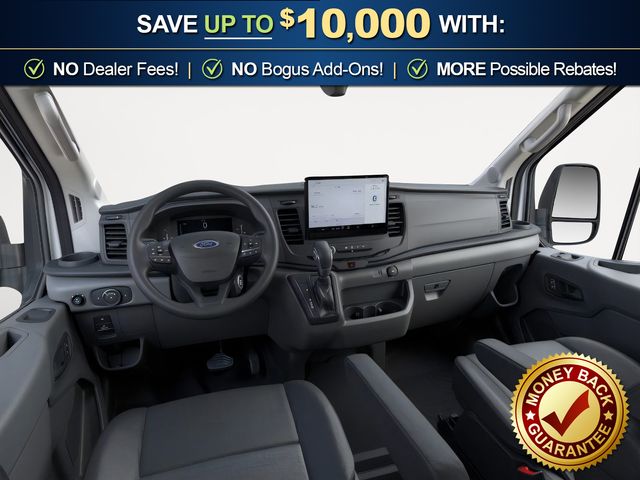 2026 Ford Transit-350 Base NFT Oxford White NFT RWD 10-Speed Automatic with Overdrive 3.5L V6 Flex Fuel 2 Additional Keys (4 Total), 4 Speakers, 4-Wheel Disc Brakes, 4.10 Limited-Slip Axle Ratio, ABS brakes, Air Conditioning, AM/FM radio, AM/FM Stereo, Apple CarPlay/Android Auto, Auto High-beam Headlights, Brake assist, Cloth Front Bucket Seats, Dark Palazzo Gray Vinyl Bucket Seats, Delay-off headlights, Driver door bin, Driver's Seat Mounted Armrest, Dual front impact airbags, Dual front side impact airbags, Electronic Stability Control, Emergency communication system: 911 Assist, Exterior Parking Camera Rear, Ford Connectivity Package (1-Year Included), Front and Rear Vinyl Floor Covering, Front anti-roll bar, Front Bucket Seats, Front License Plate Bracket, Front reading lights, Front wheel independent suspension, Full Rear Compartment Lighting, Fully automatic headlights, Illuminated entry, Load Area Protection Package, Low tire pressure warning, Midship Extended Range Fuel Tank (31 Gallons), Navigation system: Connected Navigation, Occupant sensing airbag, Overhead airbag, Panic alarm, Passenger cancellable airbag, Passenger door bin, Power door mirrors, Power steering, Power windows, Rain sensing wipers, Remote keyless entry, Speed control, Steering wheel mounted audio controls, SYNC 4, Tachometer, Telescoping steering wheel, Tilt steering wheel, Traction control, Variably intermittent wipers, Vinyl Front Bucket Seats, Wheels: 16" Silver Steel with Black Hubcap.