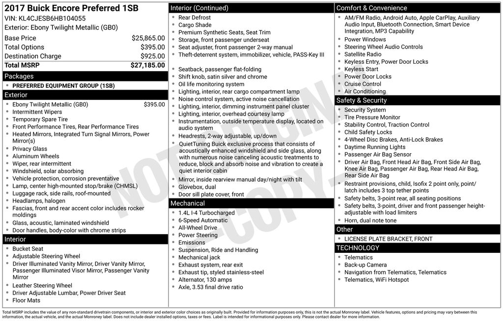 2017 Buick Encore Preferred SUV ECOTEC I4 SMPI DOHC Turbocharged VVT