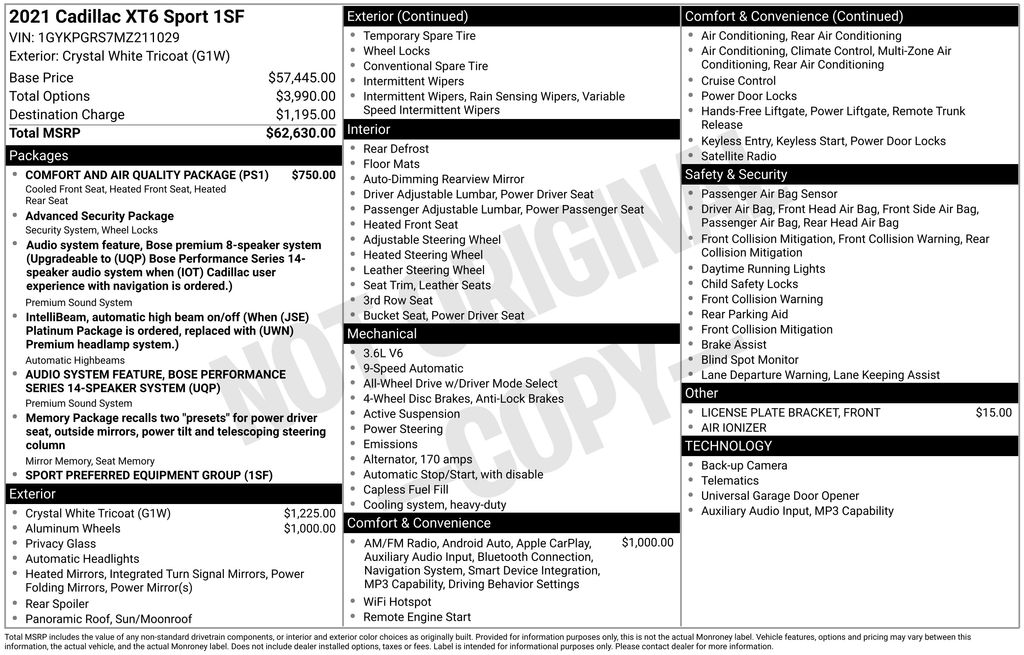 2021 Cadillac XT6 Sport SUV V6 DI VVT