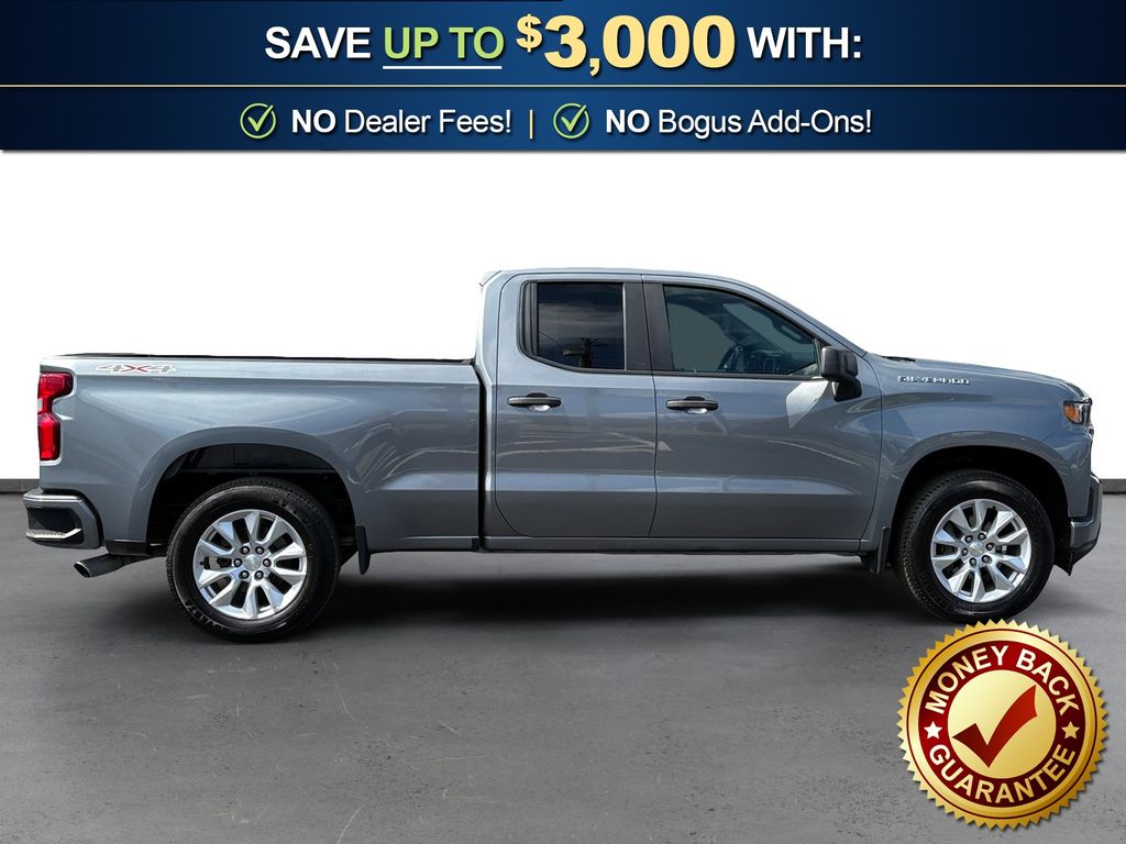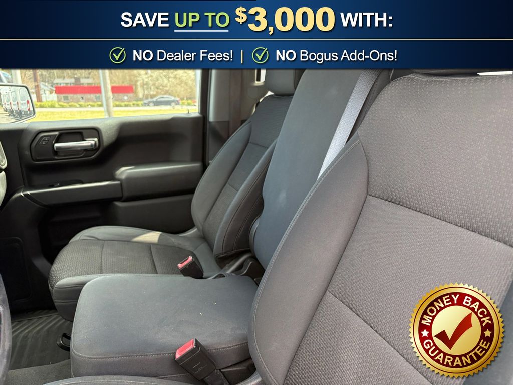 6-Speed Automatic Electronic with Overdrive, 4WD, Black Cloth, 170 Amp Alternator, 3.42 Rear Axle Ratio, 3.5" Diagonal Monochromatic Display, 4-Wheel Disc Brakes, 6 Speakers, ABS brakes, Air Conditioning, Alloy wheels, AM/FM radio, Apple CarPlay/Android Auto, Bluetooth® For Phone, Brake assist, Chevrolet Connected Access, Chevrolet w/4G LTE, Cloth Seat Trim, Color-Keyed Carpeting Floor Covering, Compass, Custom Convenience Package, Deep-Tinted Glass, Delay-off headlights, Driver door bin, Driver vanity mirror, Dual front impact airbags, Dual front side impact airbags, Electric Rear-Window Defogger, Electronic Cruise Control, Electronic Stability Control, Exterior Parking Camera Rear, EZ Lift Power Lock & Release Tailgate, Front 40/20/40 Split-Bench Seat, Front anti-roll bar, Front Center Armrest, Front reading lights, Front Rubberized Vinyl Floor Mats, Front wheel independent suspension, Fully automatic headlights, Heated door mirrors, Heavy-Duty Rear Locking Differential, Hitch Guidance, Illuminated entry, Infotainment Package, LED Cargo Area Lighting, Locking Tailgate, Low tire pressure warning, Manual Tilt Wheel Steering Column, Occupant sensing airbag, OnStar & Chevrolet Connected Services Capable, Outside temperature display, Overhead airbag, Overhead console, Panic alarm, Passenger door bin, Passenger vanity mirror, Polished Exhaust Tip, Power Door Locks, Power door mirrors, Power Front Windows w/Driver Express Up/Down, Power Front Windows w/Passenger Express Down, Power Rear Windows w/Express Down, Power steering, Power windows, Premium audio system: Chevrolet Infotainment System 3, Radio data system, Radio: Chevrolet Infotainment 3 System, Rear 60/40 Folding Bench Seat (Folds Up), Rear reading lights, Rear Rubberized-Vinyl Floor Mats, Rear step bumper, Remote Keyless Entry, Remote keyless entry, Remote Vehicle Starter System, SiriusXM Radio, Speed control, Speed-sensing steering, Split folding rear seat, Tachometer, Theft Deterrent System (Unauthorized Entry), Tilt steering wheel, Traction control, Trailering Package, Trip computer, Variably intermittent wipers, Voltmeter, 6-Speed Automatic Electronic with Overdrive, 4WD, Black Cloth. 2019 Chevrolet Silverado 1500 Custom