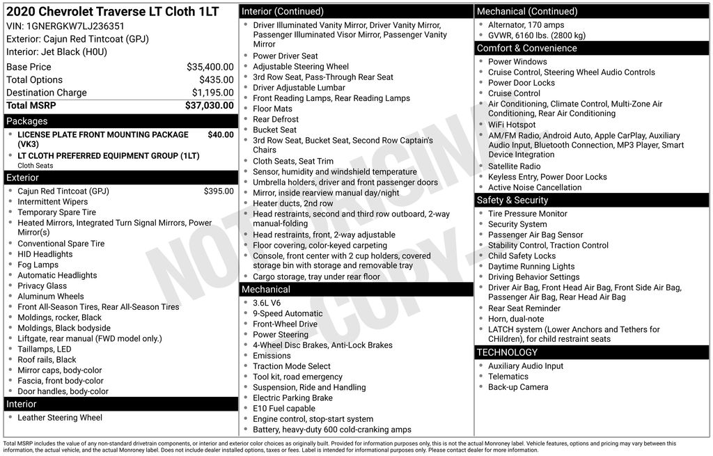 2020 Chevrolet Traverse LT SUV V6 SIDI VVT