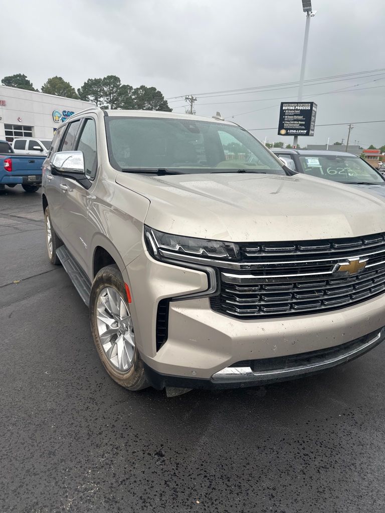 2021 Chevrolet Tahoe Premier Empire Beige Metallic Premier RWD 10-Speed Automatic with Overdrive EcoTec3 5.3L V8 Jet Black/Maple Sugar Leather, 10 Speakers, 12-Way Power Driver & Passenger Seat Adjusters, 15" Diagonal Multi-Color Head-Up Display, 1st & 2nd Row Color-Keyed Carpeted Floor Mats, 2 USB Data Ports, 20" x 9" Polished Aluminum Wheels, 3.23 Rear Axle Ratio, 3rd Row 60/40 Power-Folding Split-Bench Seat, 3rd row seats: split-bench, 4-Wheel Disc Brakes, ABS brakes, Adaptive Cruise Control, Adaptive suspension, Advanced Trailering Package, Advanced Trailering System, Air Conditioning, Alloy wheels, AM/FM radio: SiriusXM with 360L, Apple CarPlay/Android Auto, Auto High-beam Headlights, Auto-dimming door mirrors, Auto-Dimming Inside Rear-View Mirror, Auto-dimming Rear-View mirror, Auto-leveling suspension, Automatic Heated Steering Wheel, Automatic temperature control, Bose 10-Speaker Centerpoint Surround Audio Sys Ft, Brake assist, Bright Front & Rear Door Sill Plates, Bumpers: body-color, Chrome Door Handles w/Body-Color Strip, Chrome Mirror Caps, Color-Keyed Carpeting Floor Covering, Compass, Delay-off headlights, Driver & Front Outboard Passenger Airbags, Driver door bin, Driver vanity mirror, Dual Exhaust System, Dual front impact airbags, Dual front side impact airbags, Dual-Pane Power Panoramic Sunroof, Electronic Stability Control, Emergency communication system: OnStar and Chevrolet connected services capable, Enhanced Automatic Emergency Braking, Enhanced Display & Alert Package, Enhanced Driver Information Center, Extra Capacity Cooling System, Floor Console w/Storage Area, Four wheel independent suspension, Front & Rear Park Assist, Front anti-roll bar, Front Bucket Seats, Front Center Armrest, Front dual zone A/C, Front High-Back Reclining Bucket Seats, Front reading lights, Fully automatic headlights, Garage door transmitter, Hands-Free Rear Power Programmable Liftgate, HD Radio, HD Surround Vision, Heated & Ventilated Driver & Front Passenger Seats, Heated 2nd Row Outboard Seats, Heated door mirrors, Heated Driver & Front Passenger Seats, Heated front seats, Heated rear seats, Heated steering wheel, Hitch Guidance w/Hitch View, Illuminated entry, Infotainment Display, Inside Rearview Auto-Dimming Rear Camera Mirror, Integrated Trailer Brake Controller, Lane Change Alert w/Side Blind Zone Alert, Lane Keep Assist w/Lane Departure Warning, Leather steering wheel, Leather-Wrapped Steering Wheel, LED Daytime Running Lamps, Low tire pressure warning, Magnetic Ride Control Suspension, Max Trailering Package, Memory seat, Memory Settings, Navigation System, Occupant sensing airbag, Outside Heated Power-Adjustable Mirrors, Outside temperature display, Overhead airbag, Overhead console, Panic alarm, Passenger door bin, Passenger vanity mirror, Perforated Leather Seat Trim, Power door mirrors, Power driver seat, Power Liftgate, Power passenger seat, Power Release 2nd Row Bucket Seats, Power steering, Power Tilt & Telescopic Steering Column, Power windows, Preferred Equipment Group 1LZ, Premium audio system: Chevrolet Infotainment 3, Premium Package, Radio: Chevrolet Infotainment 3 Premium System, Rain sensing wipers, Rear air conditioning, Rear anti-roll bar, Rear Camera Mirror Washer, Rear Cross Traffic Alert, Rear Pedestrian Alert, Rear reading lights, Rear window defroster, Rear window wiper, Remote keyless entry, Remote Start, Roof rack: rails only, Safety Alert Seat, Security system, SiriusXM NavTraffic, SiriusXM Radio w/360L, Speed control, Speed-sensing steering, Split folding rear seat, Spoiler, Steering wheel memory, Steering wheel mounted audio controls, Tachometer, Telescoping steering wheel, Tilt steering wheel, Traction control, Trailer Side Blind Zone Alert, Trip computer, Turn signal indicator mirrors, Universal Home Remote, Variably intermittent wipers, Ventilated front seats, Voltmeter, Jet Black/Maple Sugar Leather.