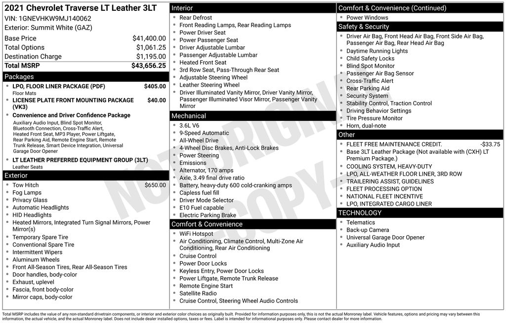 2021 Chevrolet Traverse LT Leather SUV V6 SIDI VVT