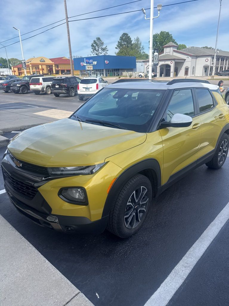 2023 Chevrolet TrailBlazer ACTIV Nitro Yellow Metallic ACTIV FWD CVT 1.3L Ecotec Turbo DOHC SIDI w/VVT 1 Type-A & 1 Type-C USB Charging-Only Ports, 120-Volt Power Outlet, 2-Way Adjustable Front Head Restraints, 2-Way Power Driver Lumbar Seat Adjuster, 4-Way Manual Front Passenger Seat Adjuster, 4-Wheel Disc Brakes, 4.2" Diagonal Multi-Color Driver Info Center, 5.45 Axle Ratio, 6 Speakers, 6-Speaker Audio System Feature, 7" Diagonal Color Touchscreen, 8-Way Power Driver Seat Adjuster, 8" Diagonal Color Touchscreen Display, ABS brakes, Adaptive Cruise Control, Air Conditioning, Alloy wheels, AM/FM radio: SiriusXM, Auto High-beam Headlights, Bose Premium 7-Speaker Audio System Feature, Brake assist, Bumpers: body-color, Cabin Humidity Sensor, Cargo Mat, Compass, Convenience Package, Delay-off headlights, Driver & Front Passenger Illuminated Vanity Mirrors, Driver Confidence Package, Driver door bin, Driver vanity mirror, Dual front impact airbags, Dual front side impact airbags, Dual-Pane Panoramic Power Sunroof, Electronic Stability Control, Emergency communication system: OnStar and Chevrolet connected services capable, Exterior Parking Camera Rear, Flat-Folding Front Passenger Seatback, Front & Rear All-Weather Floor Liners (LPO), Front anti-roll bar, Front Bucket Seats, Front Center Armrest, Front fog lights, Front License Plate Bracket, Front reading lights, Front wheel independent suspension, Fully automatic headlights, Hands-Free Power Programmable Liftgate, HD Radio, HD Rear Vision Camera, Heated door mirrors, Heated Driver & Front Passenger Seats, Heated front seats, Heated Steering Wheel, Heated steering wheel, Illuminated entry, Inside Rear-View Auto-Dimming Mirror, Knee airbag, Lane Change Alert w/Side Blind Zone Alert, Leather Shift Knob, Leather steering wheel, Leatherette Seat Trim, LED Headlamps, Low tire pressure warning, Memory Card Receptacle, Not Equipped w/Rear Park Assist (060), Occupant sensing airbag, Overhead airbag, Overhead console, Panic alarm, Passenger door bin, Passenger vanity mirror, Power door mirrors, Power driver seat, Power steering, Power windows, Preferred Equipment Group 1SA, Radio data system, Radio: Chevrolet Infotainment 3 Plus System, Radio: Chevrolet Infotainment 3 System, Rear Cross Traffic Alert, Rear Park Assist, Rear seat center armrest, Rear side impact airbag, Rear window defroster, Rear window wiper, Remote keyless entry, Ride & Handling Suspension, Security system, Single-Zone Auto Climate Control Air Conditioning, SiriusXM Radio, SiriusXM w/360L, Speed control, Split folding rear seat, Spoiler, Steering wheel mounted audio controls, Summit White Two-Tone Roof, Sun & Liftgate Package, Tachometer, Technology Package, Telescoping steering wheel, Tilt steering wheel, Traction control, Trip computer, Variably intermittent wipers, Wheels: 17" High Gloss Black Machined Aluminum, Wireless Apple CarPlay/Android Auto, Wireless Charging.