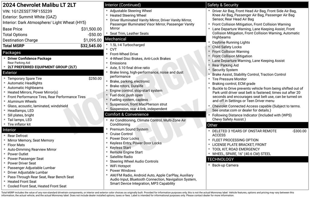 2024 Chevrolet Malibu LT FWD CVT 1.5L DOHC Summit White