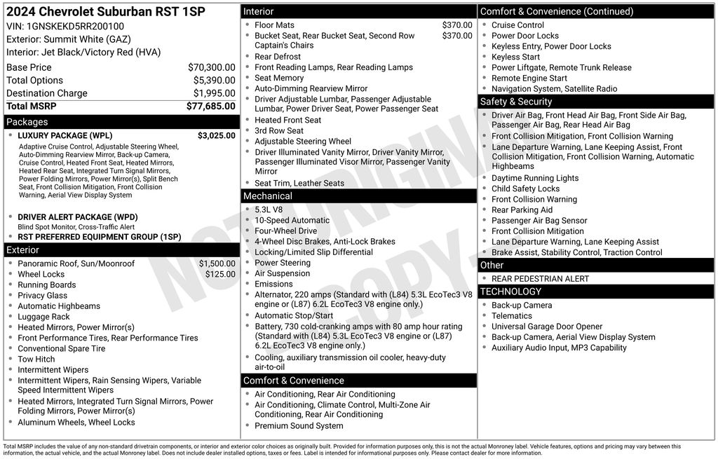 2024 Chevrolet Suburban RST SUV EcoTec3 V8