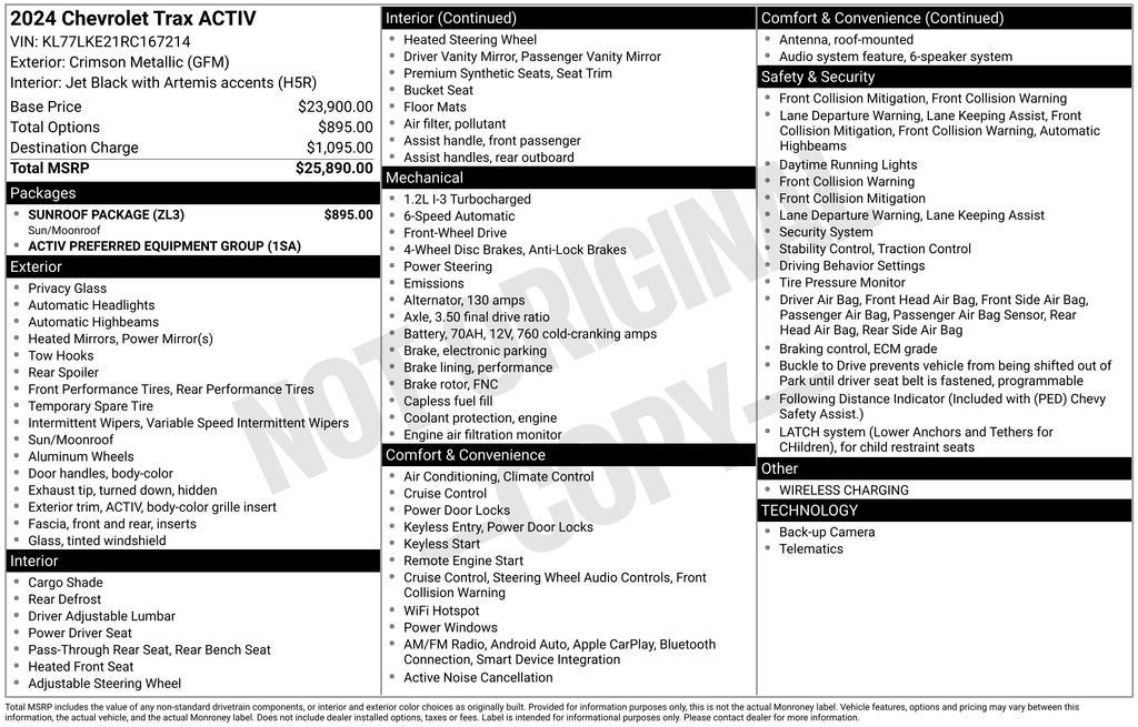 2024 Chevrolet Trax ACTIV FWD 6-Speed Automatic 1.2L Ecotec Turbo DOHC DI w/VVT Crimson Metallic