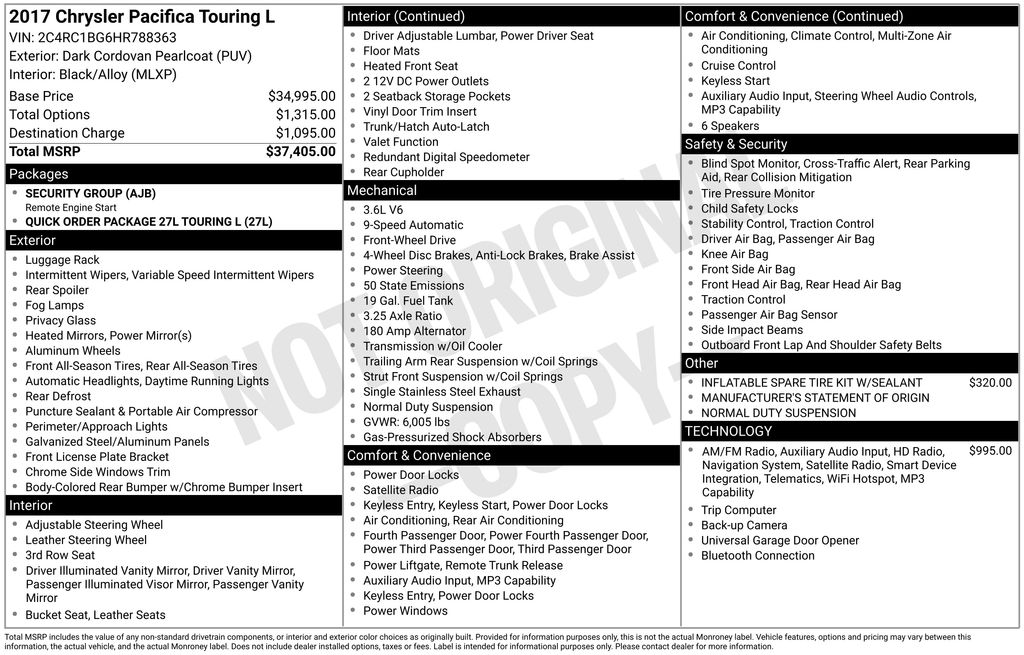 2017 Chrysler Pacifica Touring L Minivan/Van V6 24V VVT