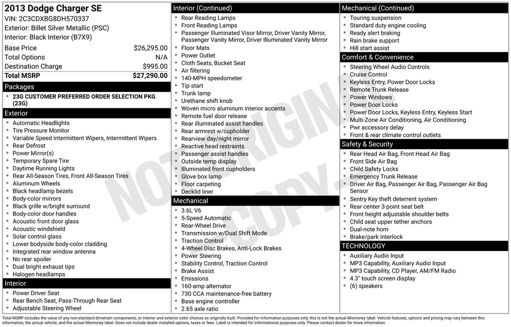 2013 Dodge Charger SE Sedan 6-Cylinder SMPI DOHC