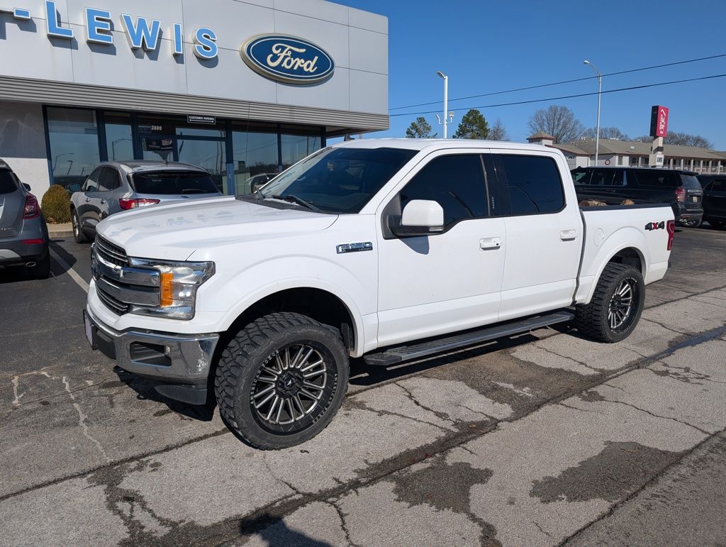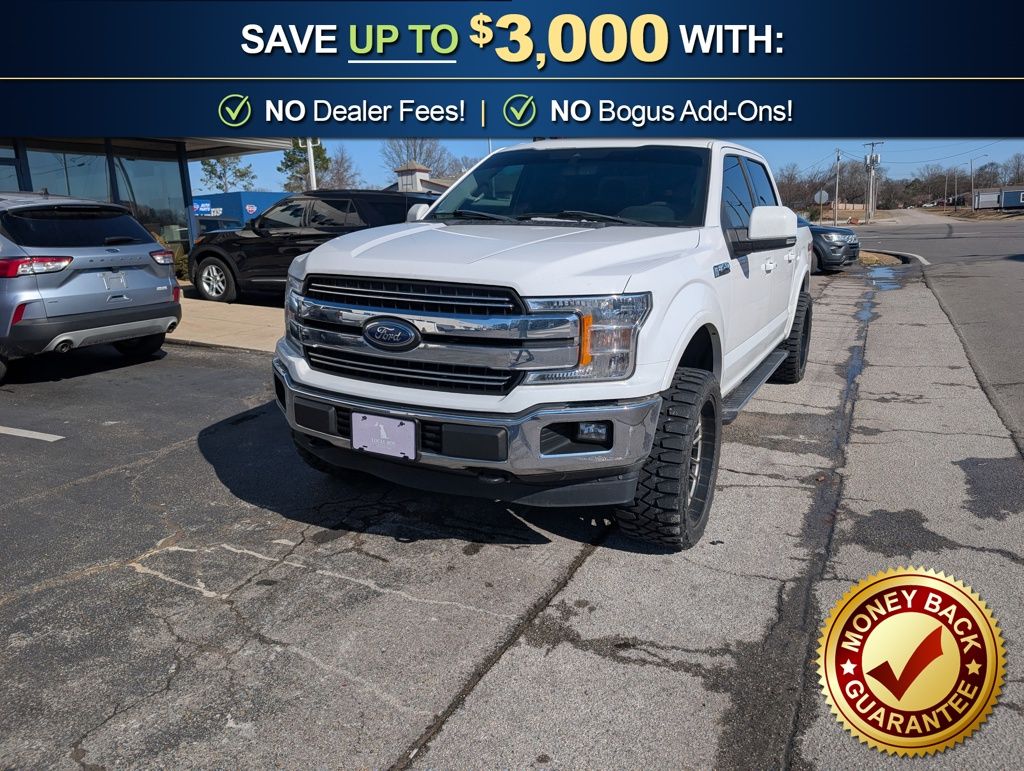 2019 Ford F-150 Lariat Oxford White Lariat 4WD 10-Speed Automatic 5.0L V8 4WD, 110V/400W Outlet, 18" Machined-Aluminum Wheels, 3.31 Axle Ratio, 4-Wheel Disc Brakes, 7 Speakers, ABS brakes, Adjustable pedals, Air Conditioning, Alloy wheels, AM/FM radio: SiriusXM, AppLink/Apple CarPlay and Android Auto, Auto High-beam Headlights, Auto-dimming door mirrors, Auto-dimming Rear-View mirror, Automatic temperature control, Brake assist, Bumpers: chrome, Class IV Trailer Hitch Receiver, Compass, Delay-off headlights, Driver door bin, Driver vanity mirror, Dual front impact airbags, Dual front side impact airbags, Electronic Stability Control, Emergency communication system: SYNC 3 911 Assist, Equipment Group 500A Base, Exterior Parking Camera Rear, Front anti-roll bar, Front Center Armrest w/Storage, Front dual zone A/C, Front fog lights, Front License Plate Bracket, Front reading lights, Front wheel independent suspension, Fully automatic headlights, GVWR: 7,050 lbs Payload Package, Heated door mirrors, Heated front seats, Illuminated entry, Leather-Trimmed 40/20/40 Front Seat, Low tire pressure warning, Memory seat, Occupant sensing airbag, Outside temperature display, Overhead airbag, Overhead console, Panic alarm, Passenger door bin, Passenger vanity mirror, Pedal memory, Power door mirrors, Power driver seat, Power passenger seat, Power steering, Power windows, Radio data system, Radio: AM/FM Stereo w/6 Speakers, Rear reading lights, Rear seat center armrest, Rear step bumper, Rear window defroster, Remote keyless entry, Security system, SiriusXM Radio, Speed control, Speed-sensing steering, Split folding rear seat, Steering wheel mounted audio controls, SYNC 3, Tachometer, Telescoping steering wheel, Tilt steering wheel, Traction control, Trip computer, Turn signal indicator mirrors, Variably intermittent wipers, Ventilated front seats, Voice-Activated Touchscreen Navigation, Voltmeter, 4WD.